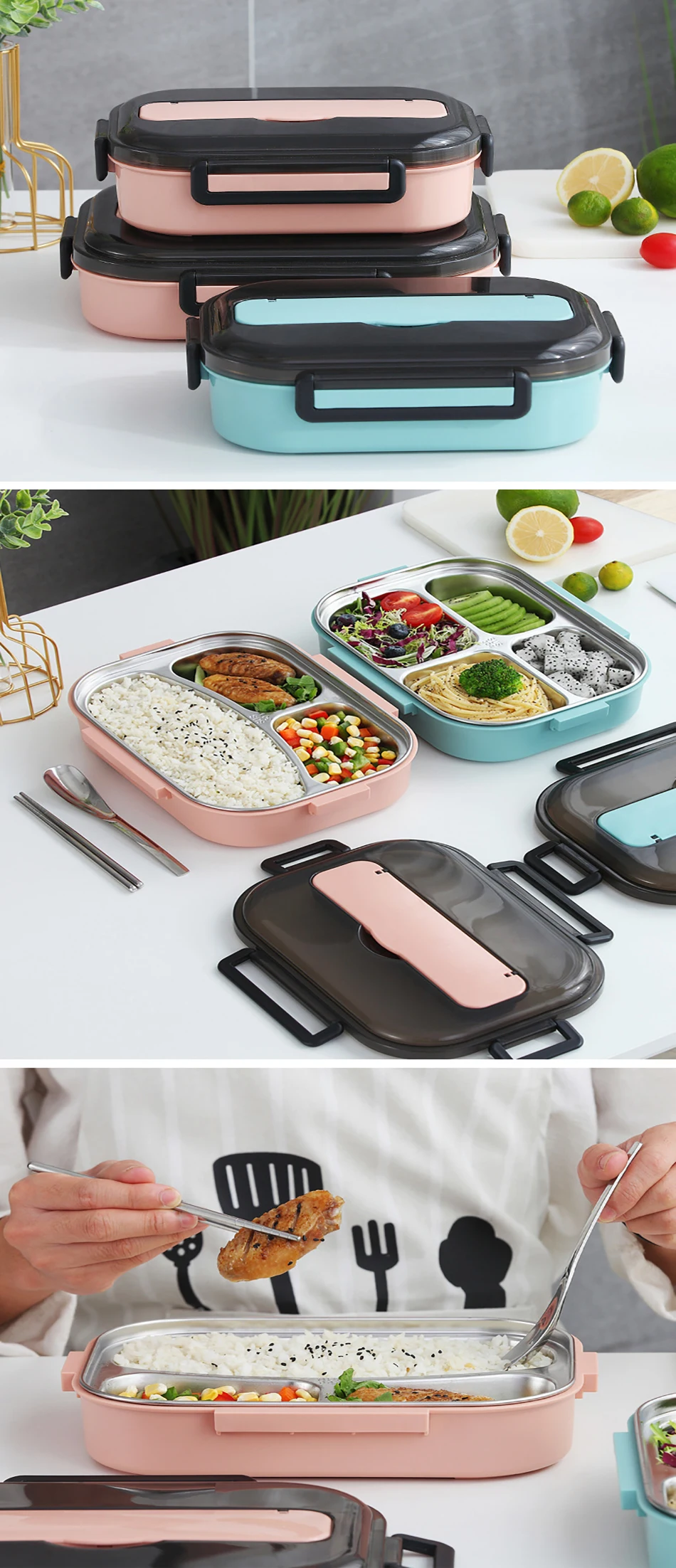 Портативный многофункциональный запаянный герметичный контейнер для еды GURET 304 из нержавеющей стали