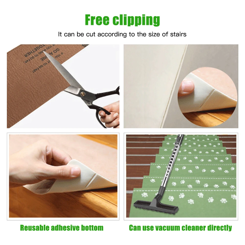* 3. Простота в использовании: моющиеся, съемные самоклеющиеся лестничные коврики прочно крепятся к полу и не легко падают