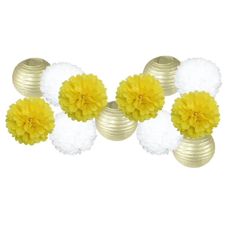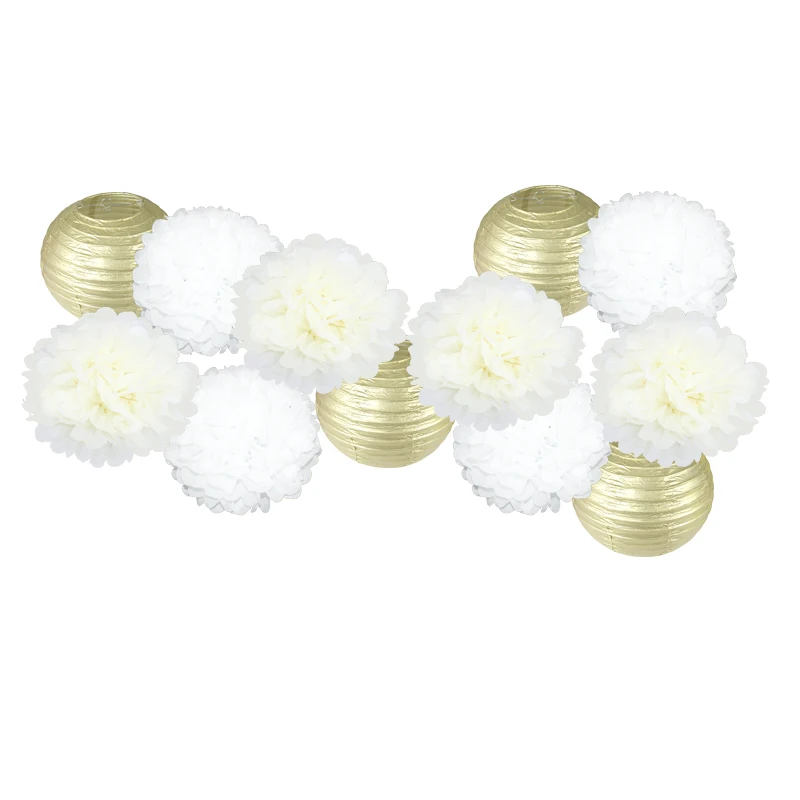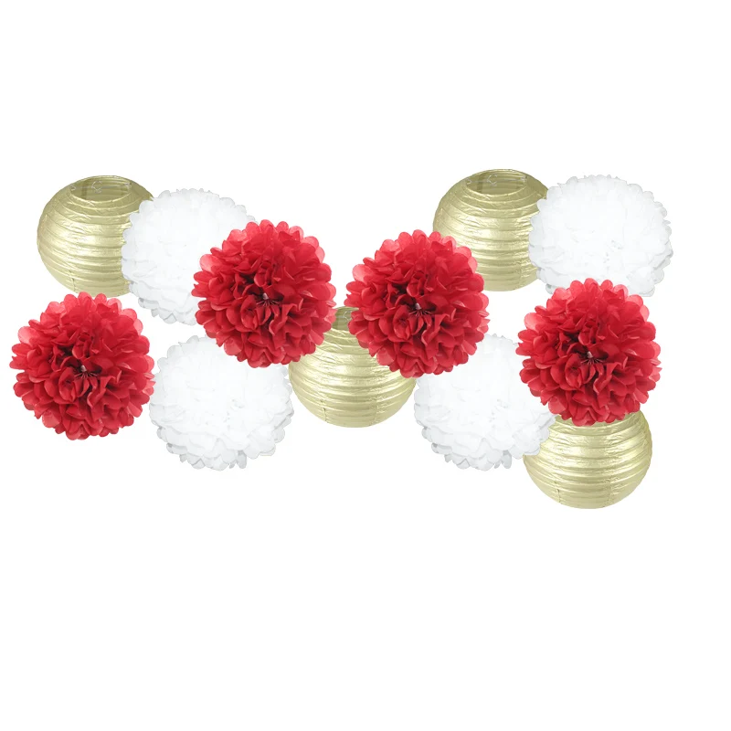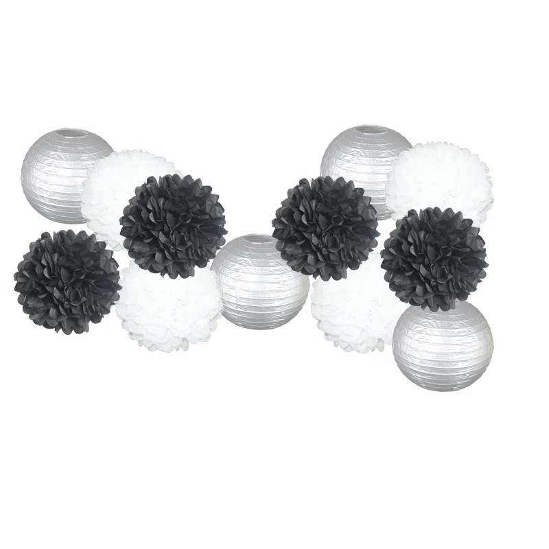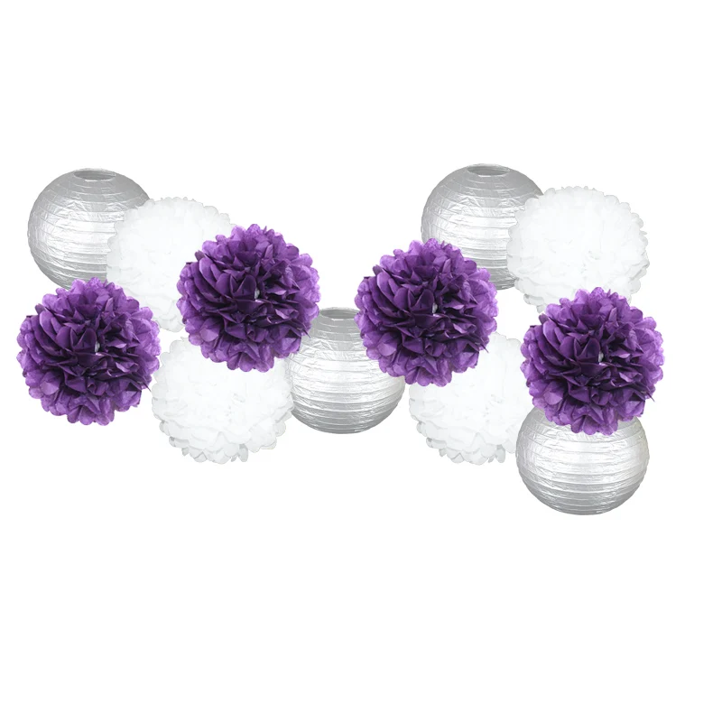 1 комплект = 4 бумажных фонаря + 8 бумажных помпонов