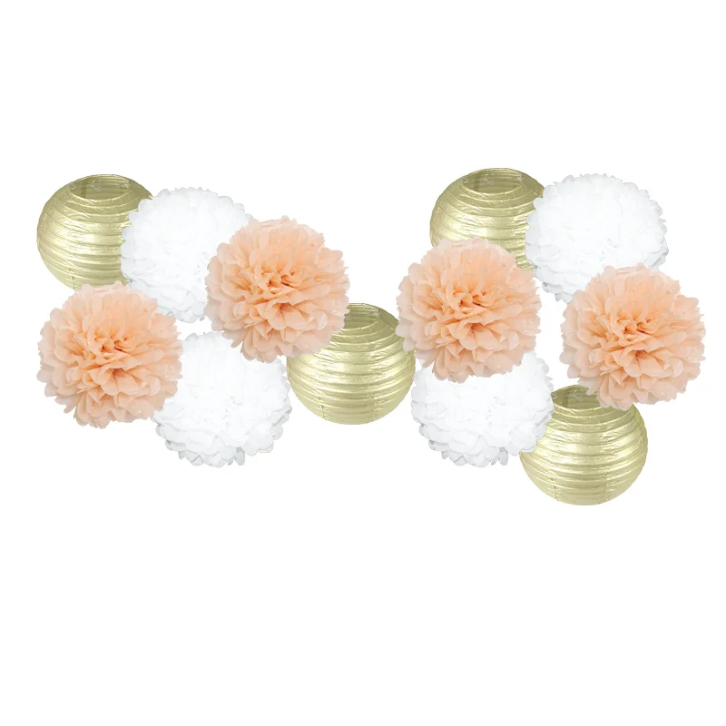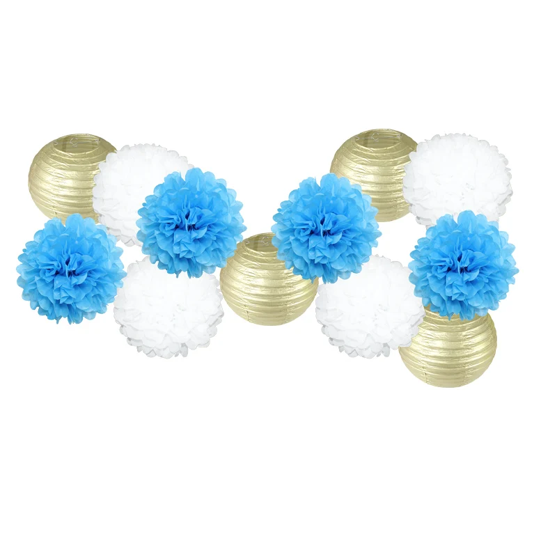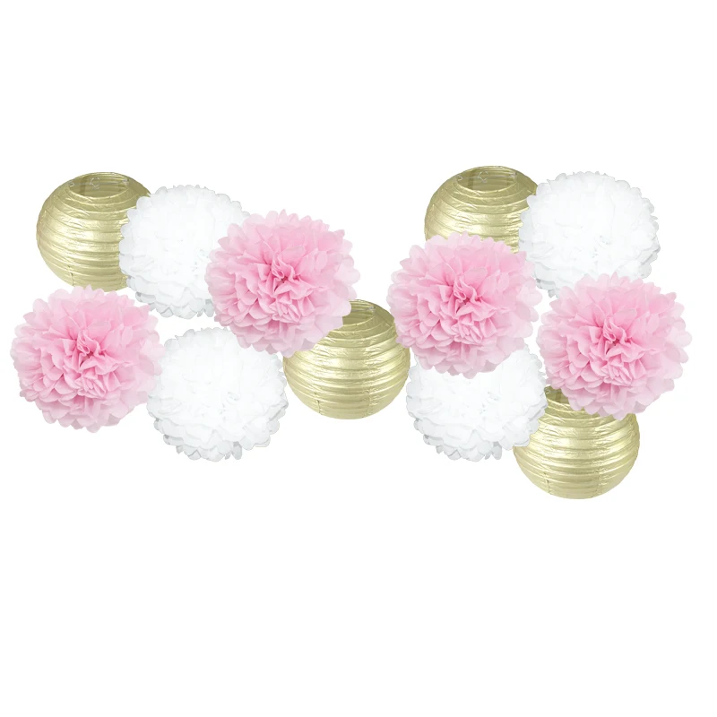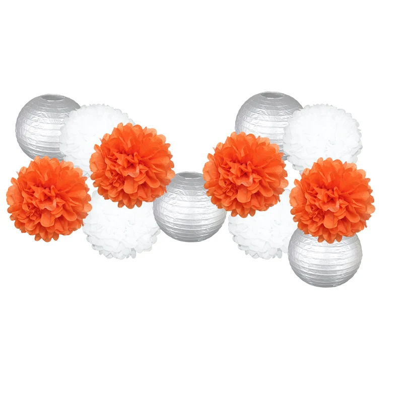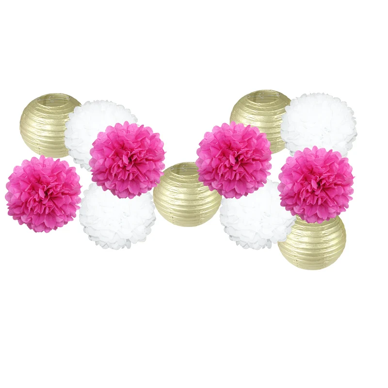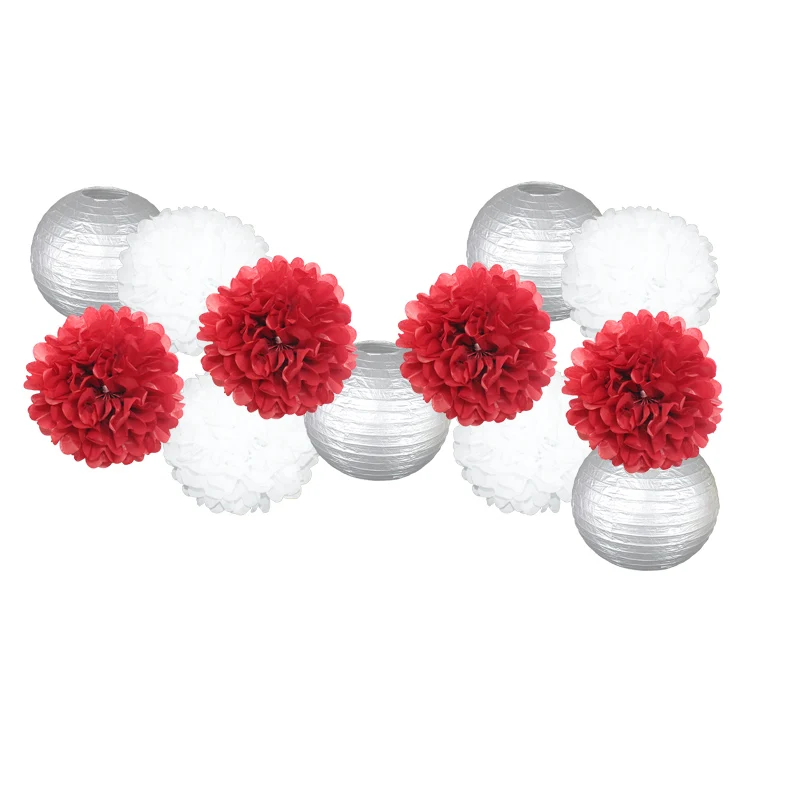 1 комплект = 4 бумажных фонаря + 8 бумажных помпонов