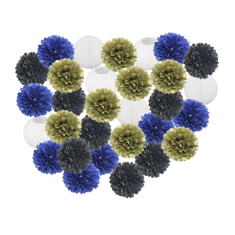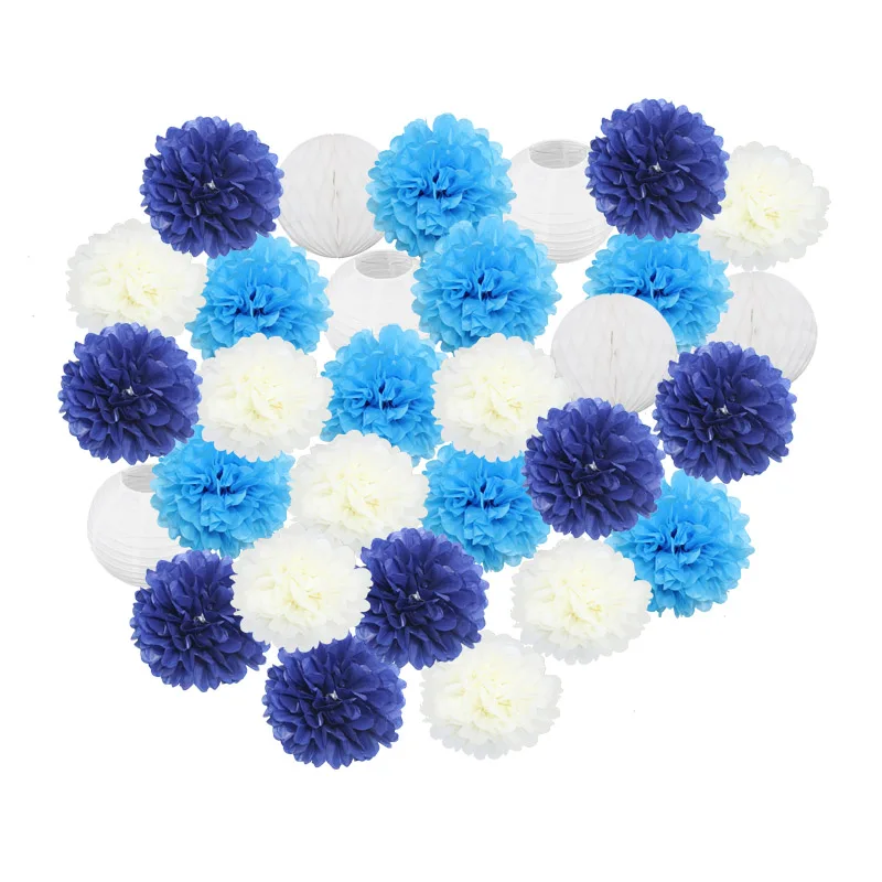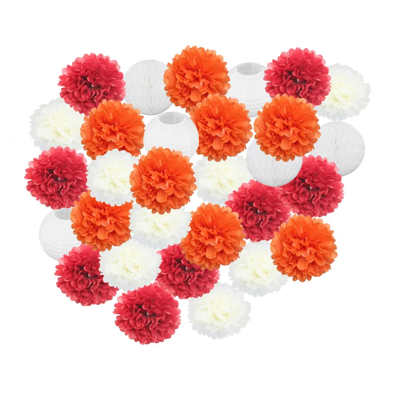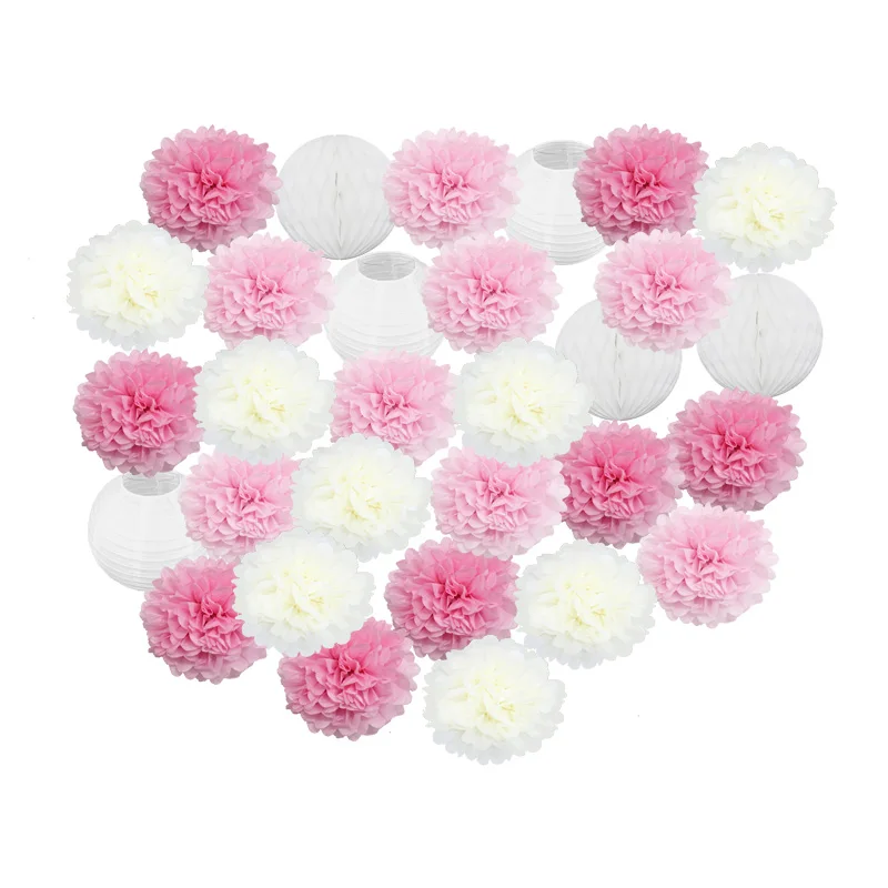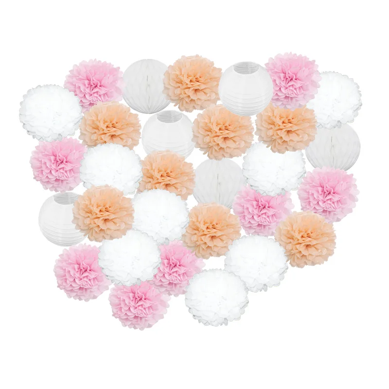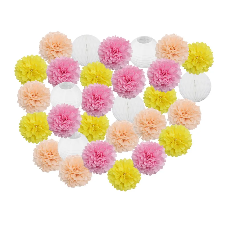 1 комплект = 3 соты + 3 бумажных фонаря + 24 бумажных Помпона