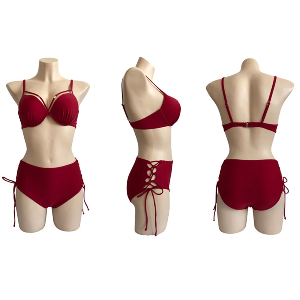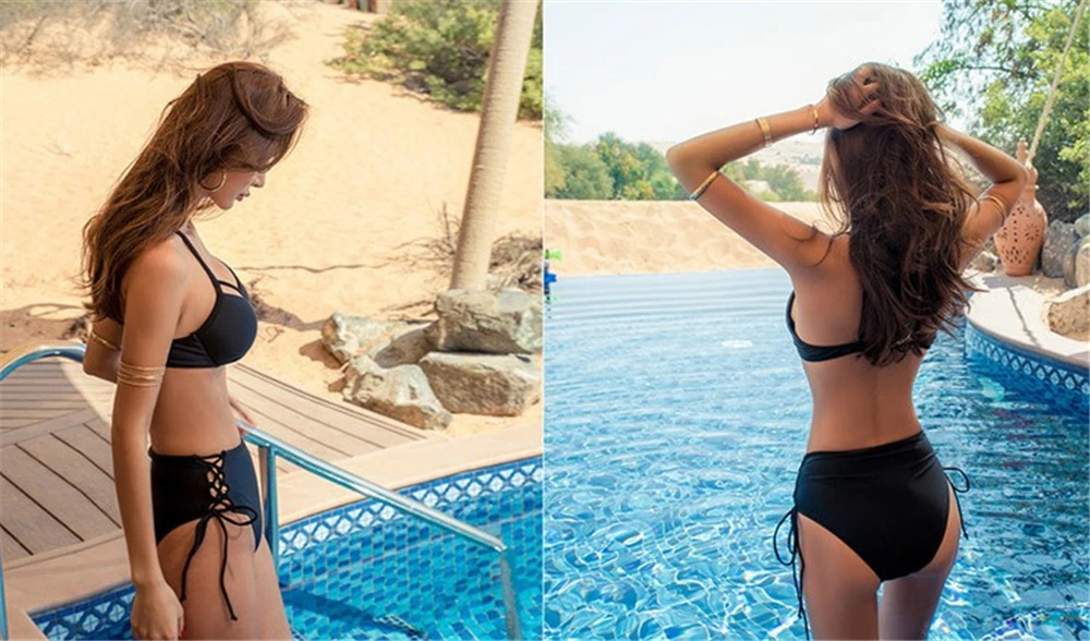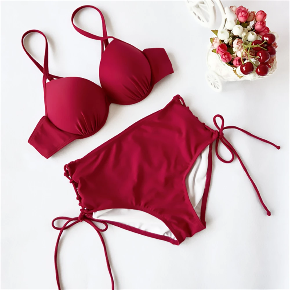 Сексуальный комплект бикини с высокой талией и пуш-апом, 2020, женский купальный костюм с завязками на боку, пляжная одежда, купальный костюм