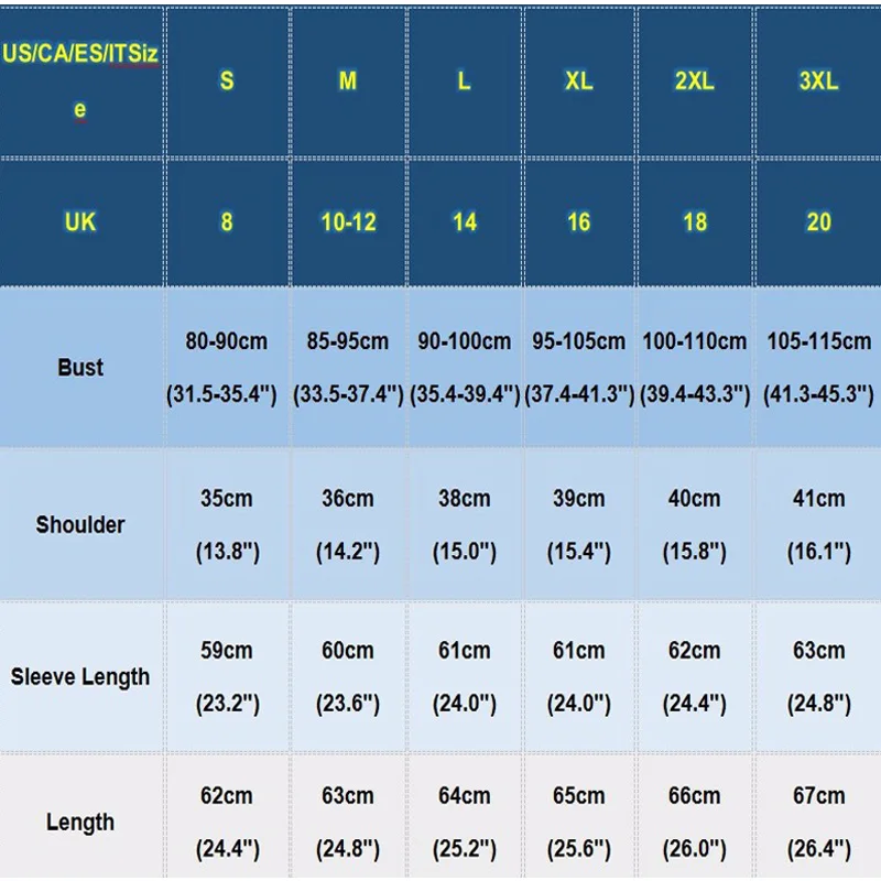 Таблица размеров (см)