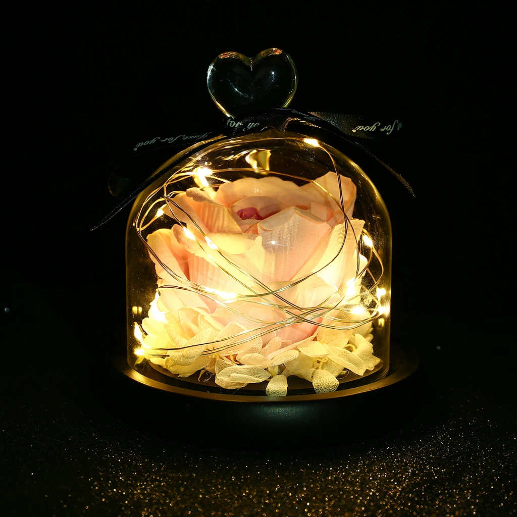 Консервированная Роза в колбе светодиодный стеклянный купол подарок на день Святого Валентина подарок на Рождество настоящая Роза подарок на день матери