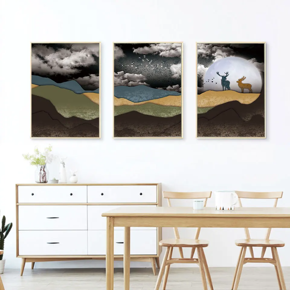 Абстрактный горный постер рисунок оленя на холсте темные облака настенные художественные фотографии для гостиной рума современный дом декоративные принты