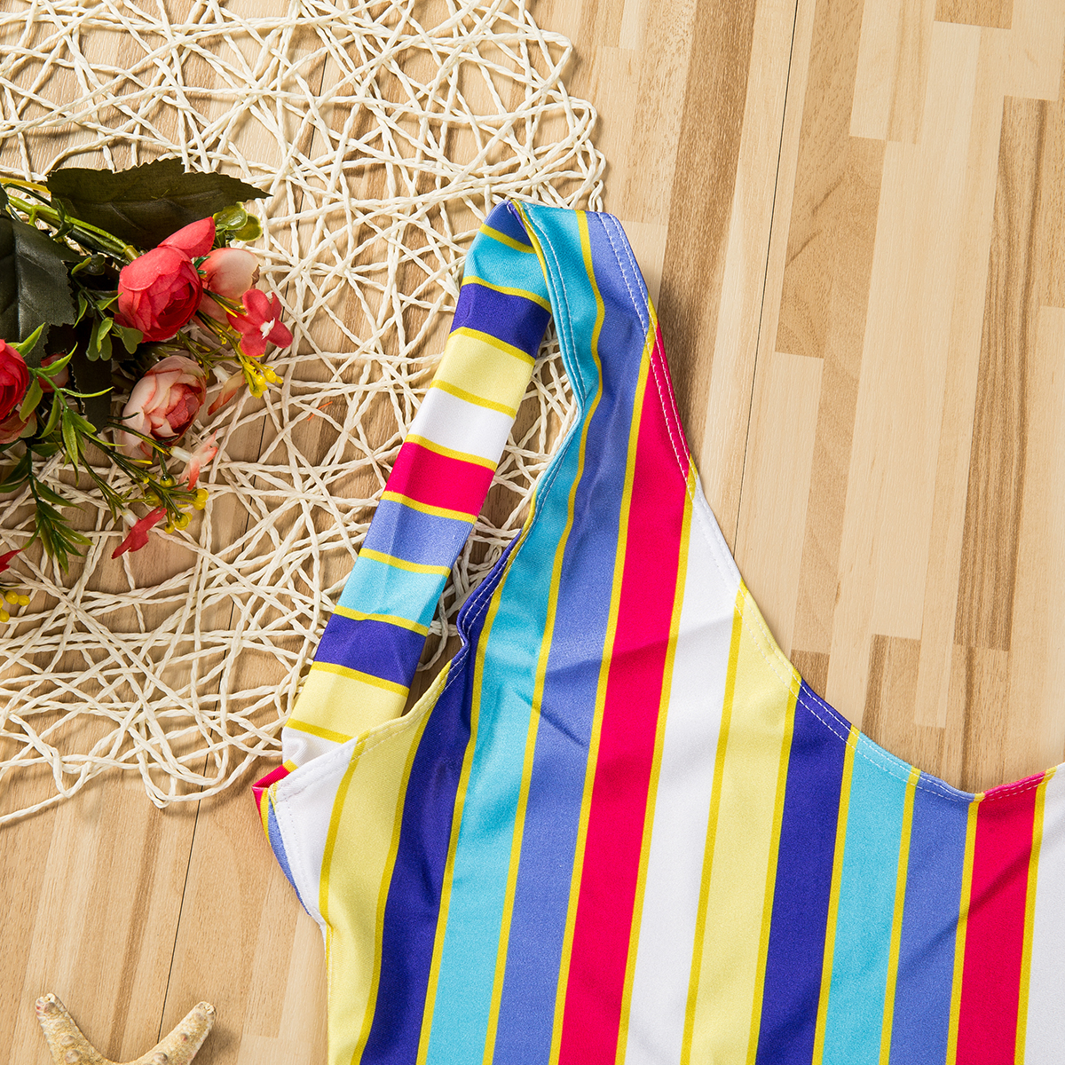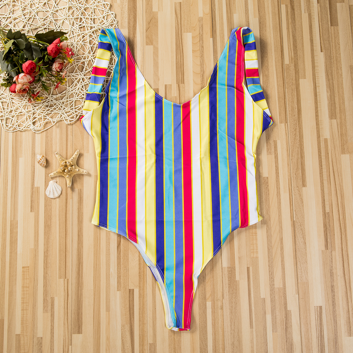 Женский бикини в Вертикальную Полоску, сексуальный купальный костюм с открытой спиной, Цветной купальник, Пляжная летняя одежда