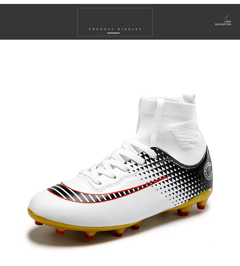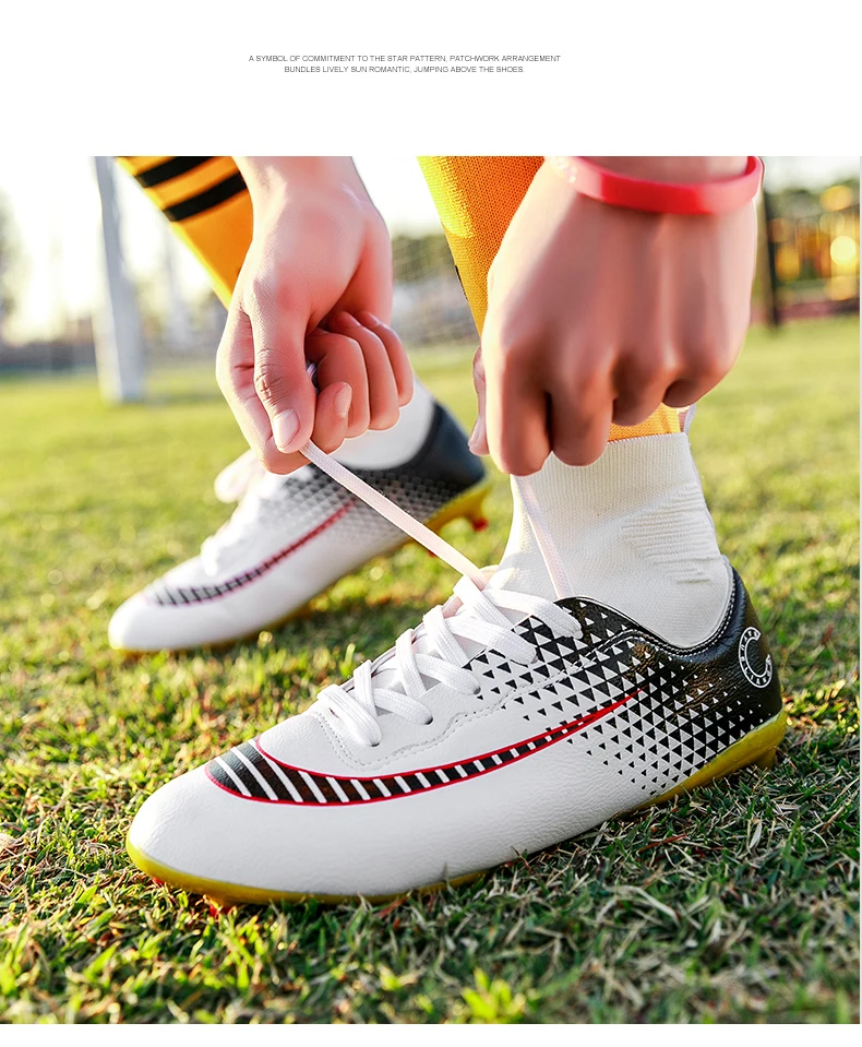 Size 34-45 Men Football Boots Black White Ankle Soccer Shoes Outdoor Grass Cleats Teenager Children Football Chuteira Society