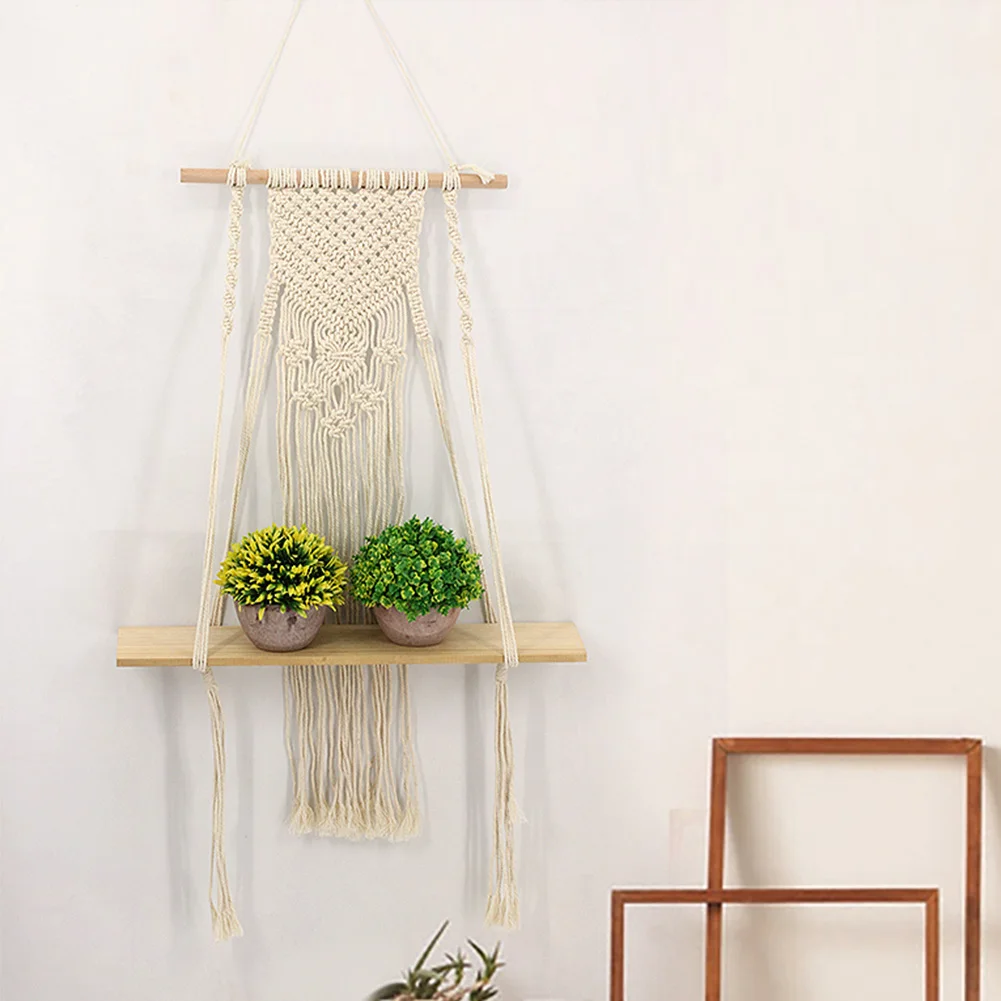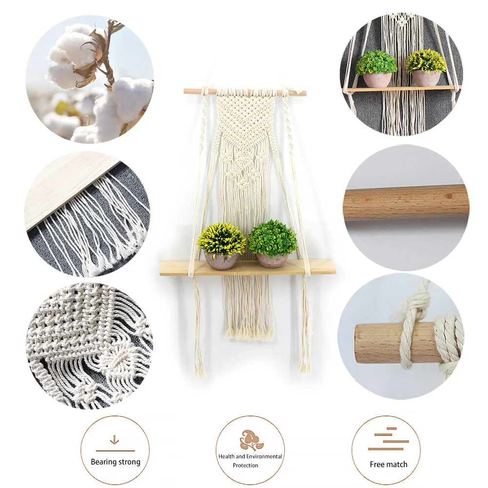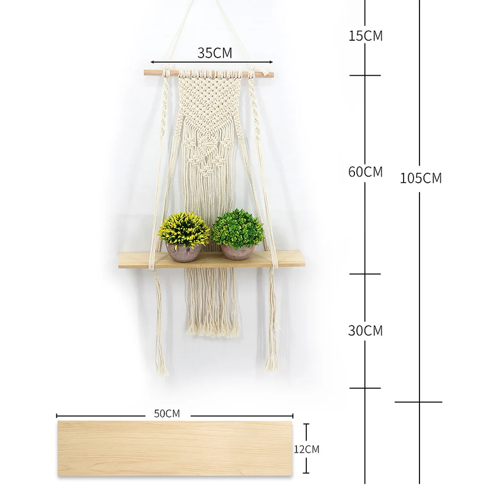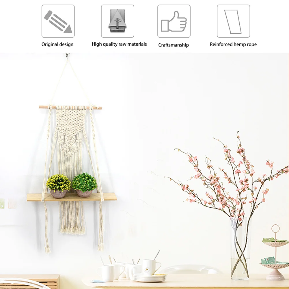 * 1. Материал: изготовлен из хлопкового шнура и деревянной полки, прочный и долговечный. Простой и современный стиль, сделает вашу жизнь элегантной и удобной. Реквизиты на фотографиях не включены.
