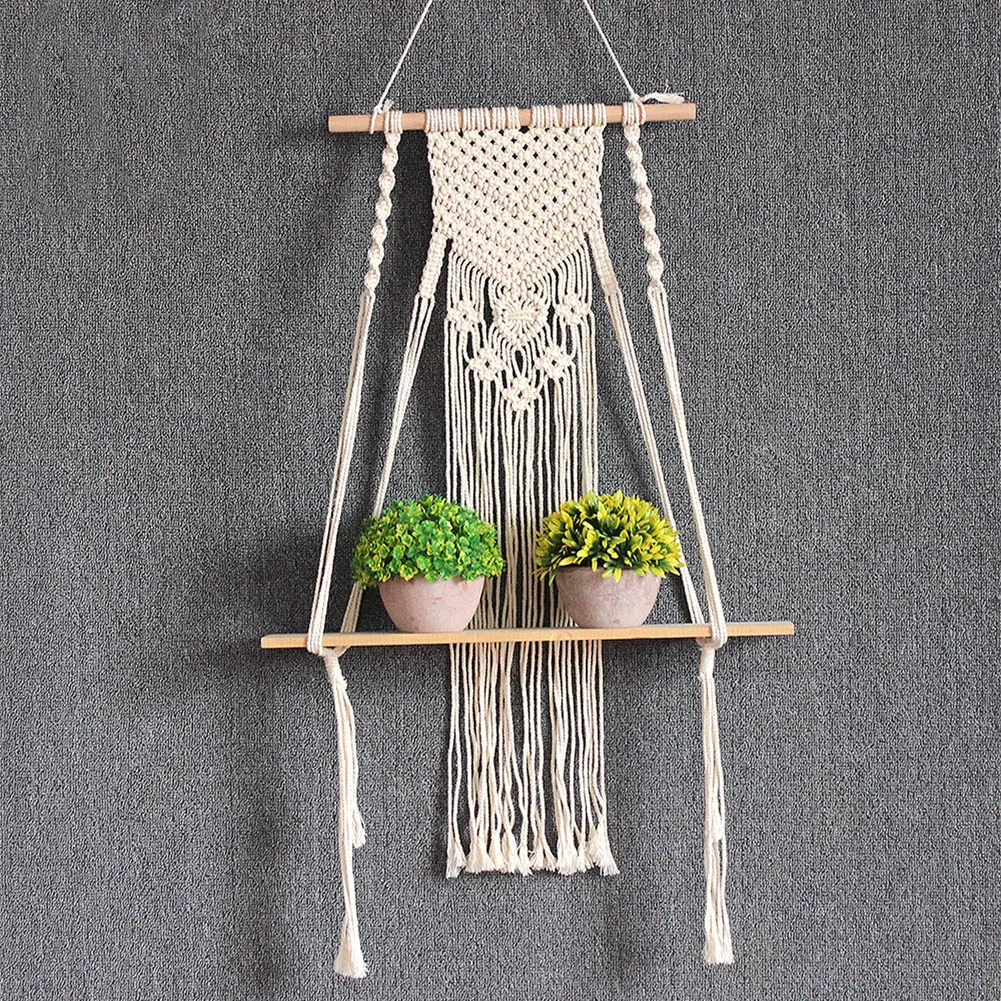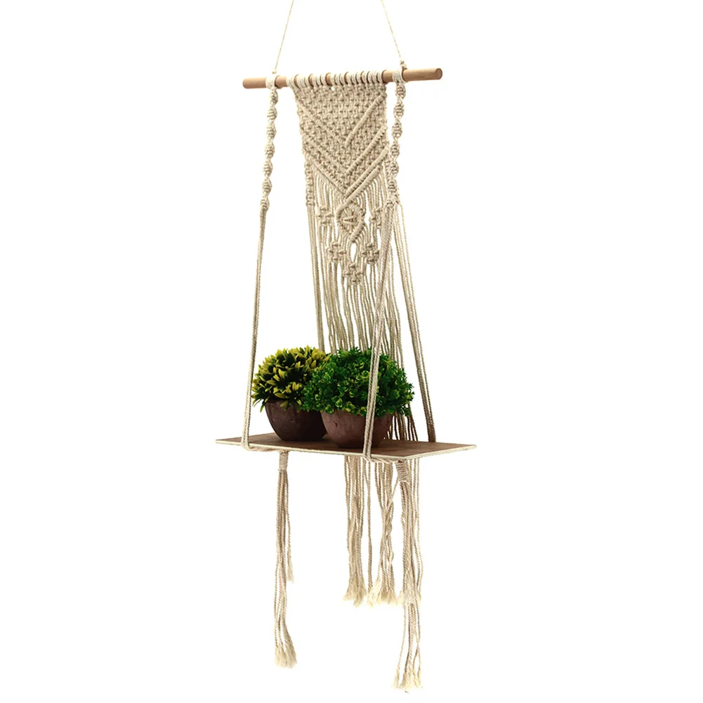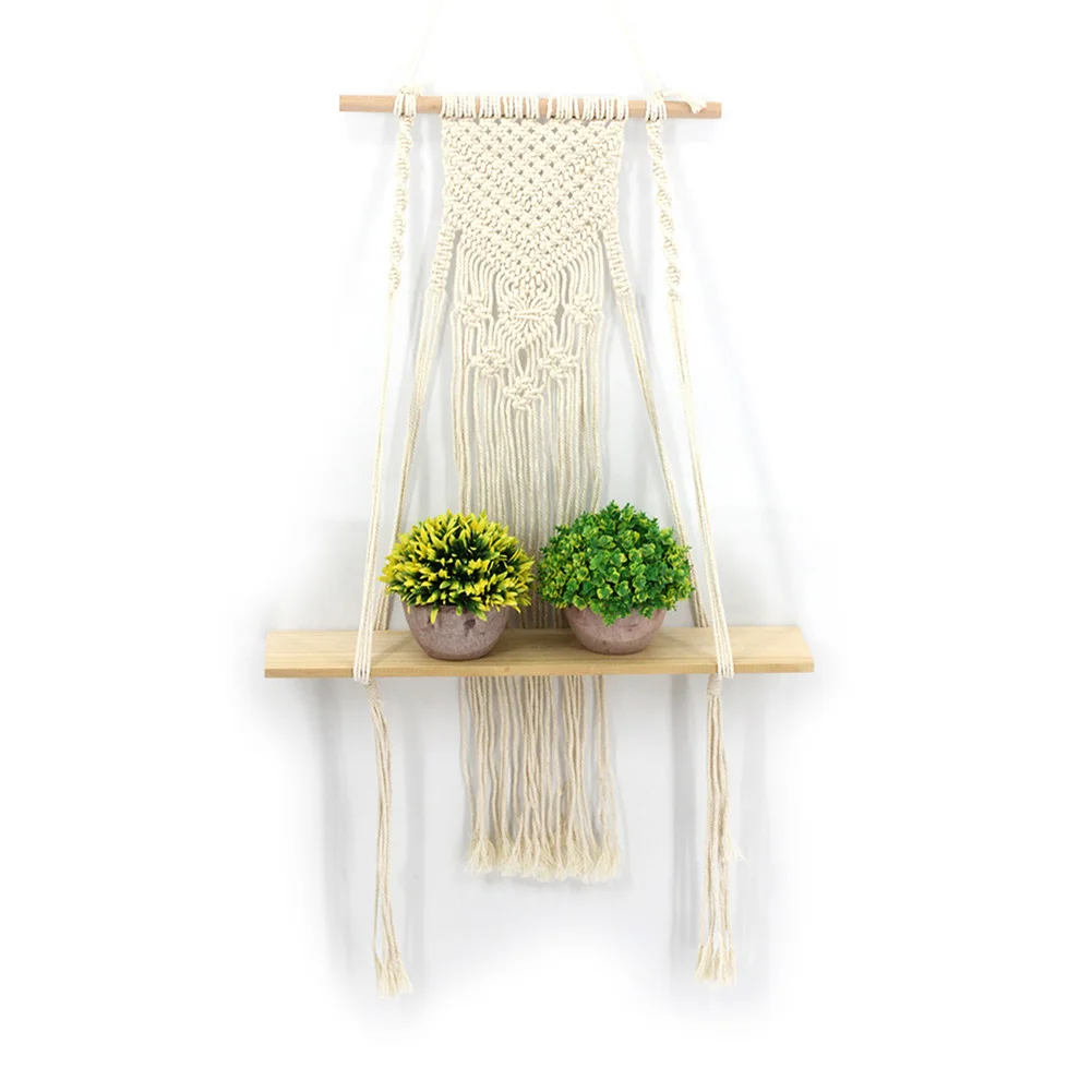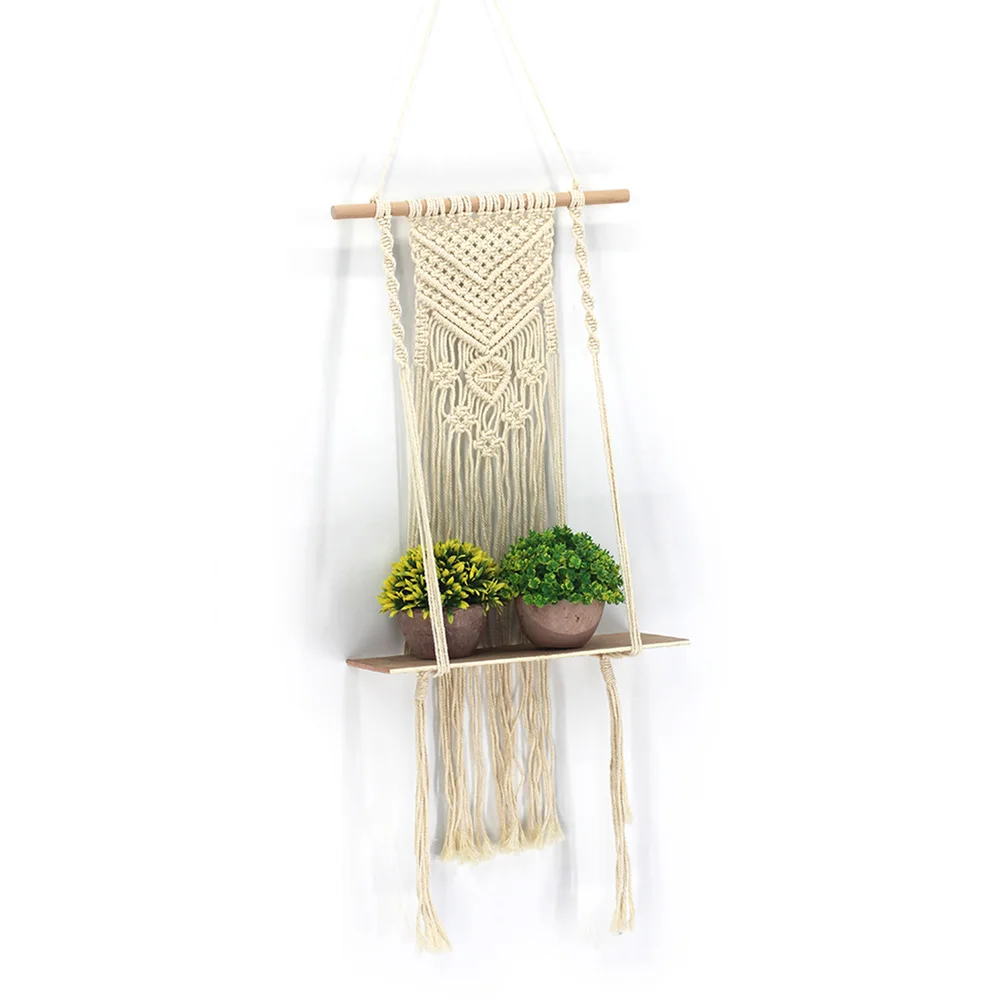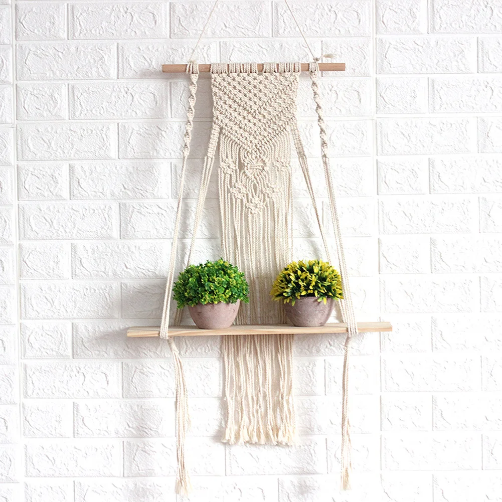 * 1. Материал: изготовлен из хлопкового шнура и деревянной полки, прочный и долговечный. Простой и современный стиль, сделает вашу жизнь элегантной и удобной. Реквизиты на фотографиях не включены.