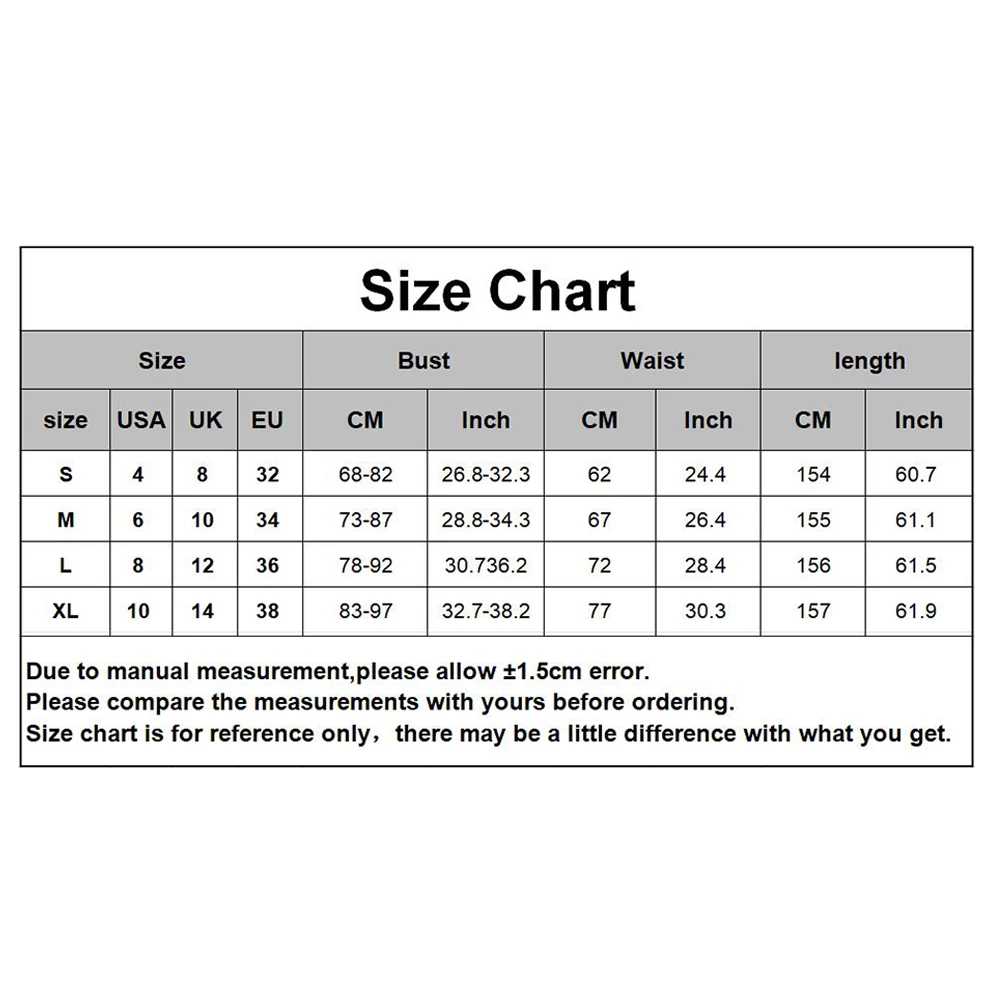 [Наш Размер S] Обхват груди: 68-82 см/26,8-32,3 дюйма, обхват талии: 62 см/24,4 дюйма, длина: 154 см/60,7 дюйма (прибл.)