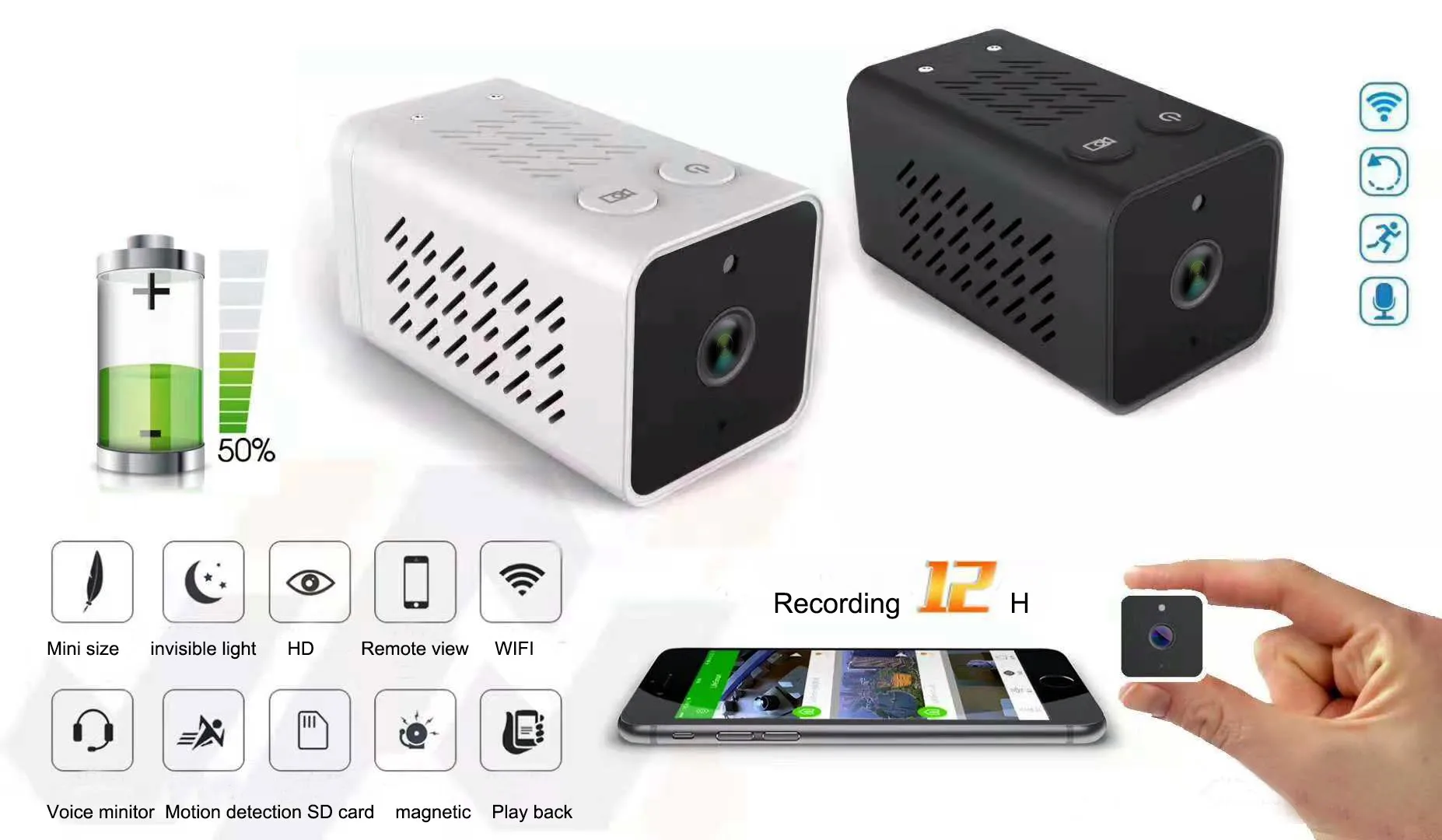 1. Датчик CMOS 1080P 1/2.7" 2. Плата объектива 2,8 мм с IR-CUT 3. ИК-расстояние: 10 м 4. Поддержка карт Micro SD до 64 ГБ, циклическая запись 5. Встроенный литий-полимерный аккумулятор 2400 мАч 6. Поддержка подключения WIFI/AP 7. Встроенный микрофон 8. Поддержка ONVIF 9. Поддержка TF-карты записи (максимум 64 ГБ)