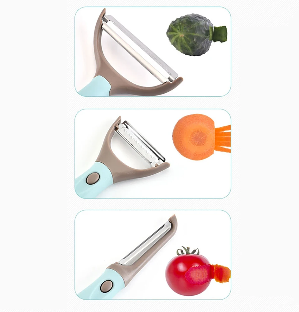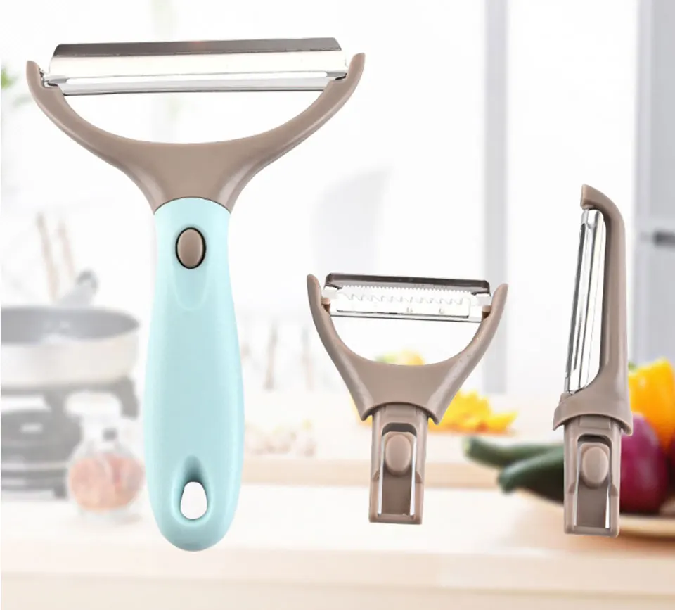 ✅ TRIO PEELER SET - New style fruit and vegetable peeler. Save your space and have 3 piece peelers simultaneously. Our set has one handle that fits 3 replaceable parts for different functions.