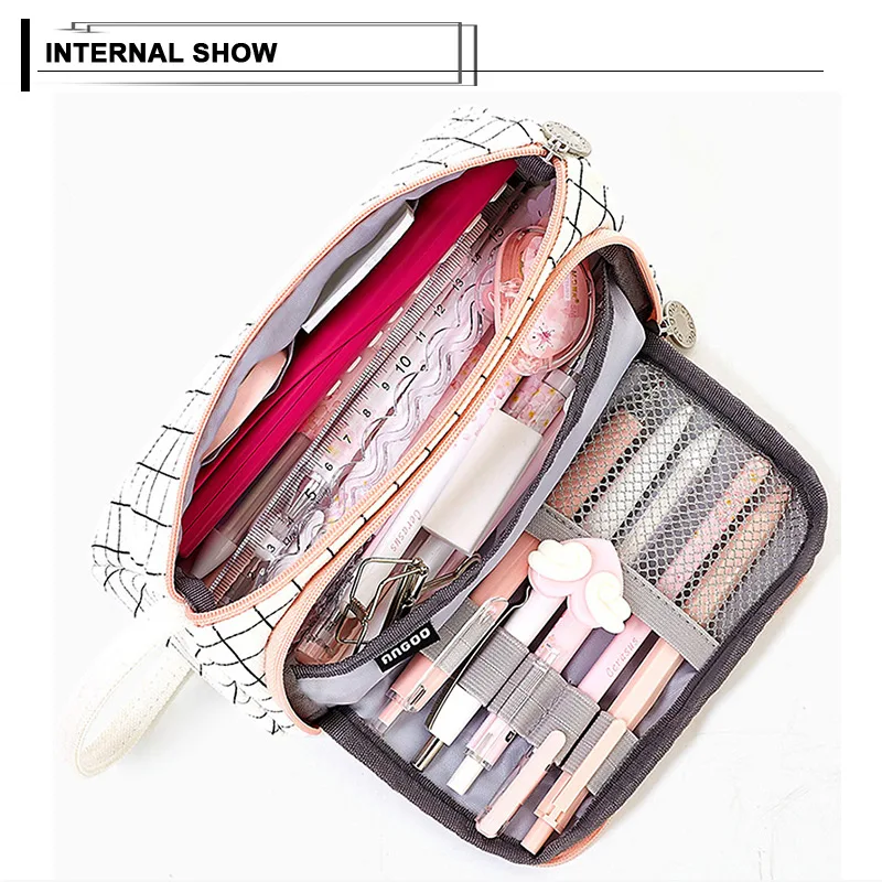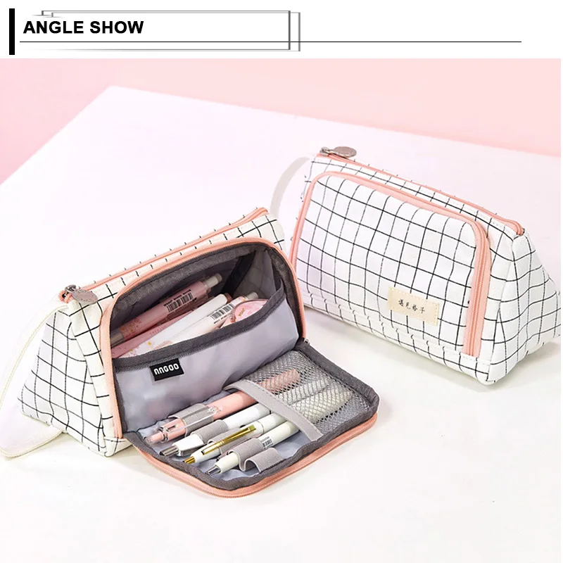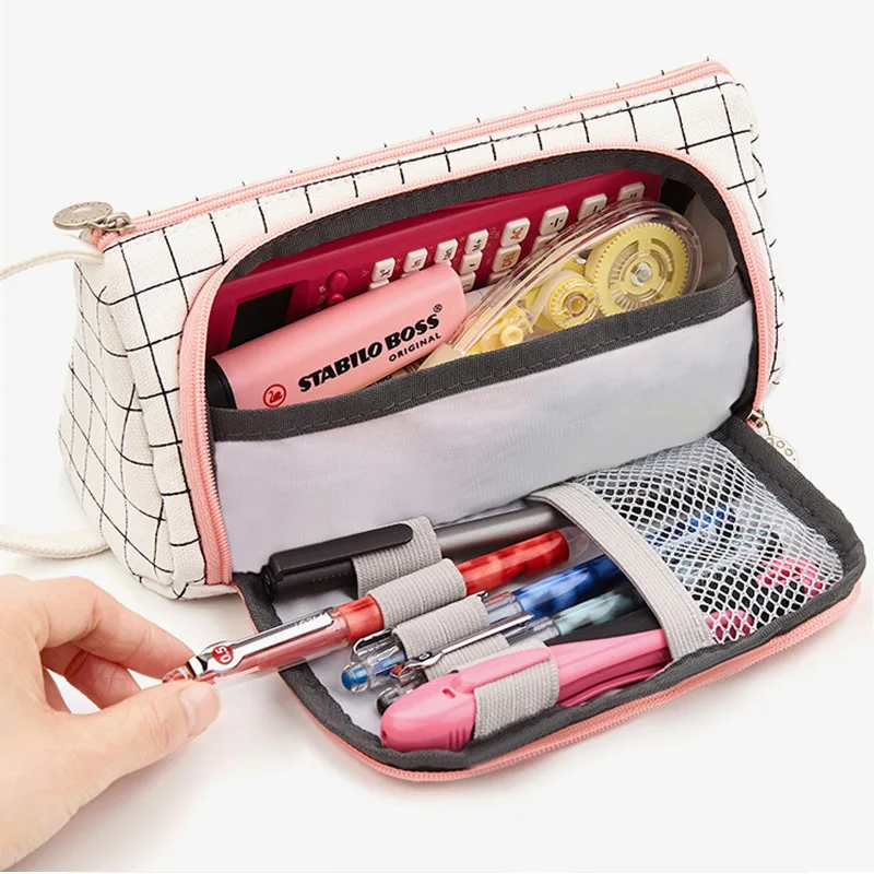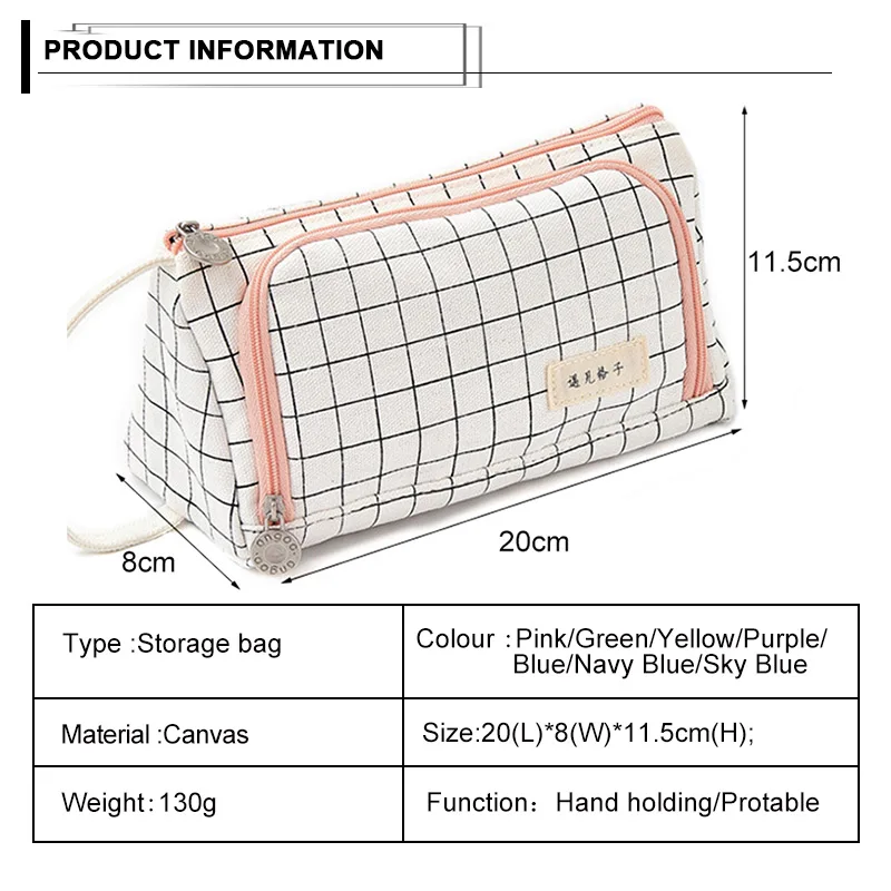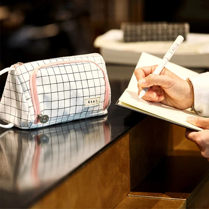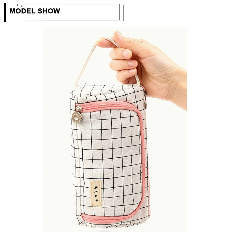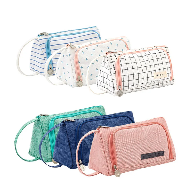 Большая вместительная Холщовая Сумка-карандаш на молнии, канцелярская ручка, сумка для хранения кистей для макияжа, органайзер, сумка для туалетных принадлежностей