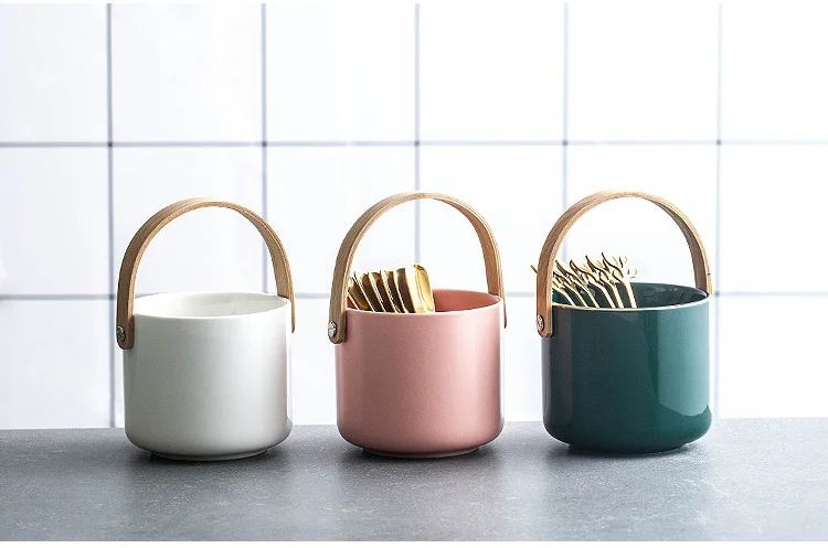 Kitchen Fork Ceramic Storage Box Chopsticks Tube Spoon Forks Cutlery Drain Portable Bucket Holder Utensils Organizer Tools Table
