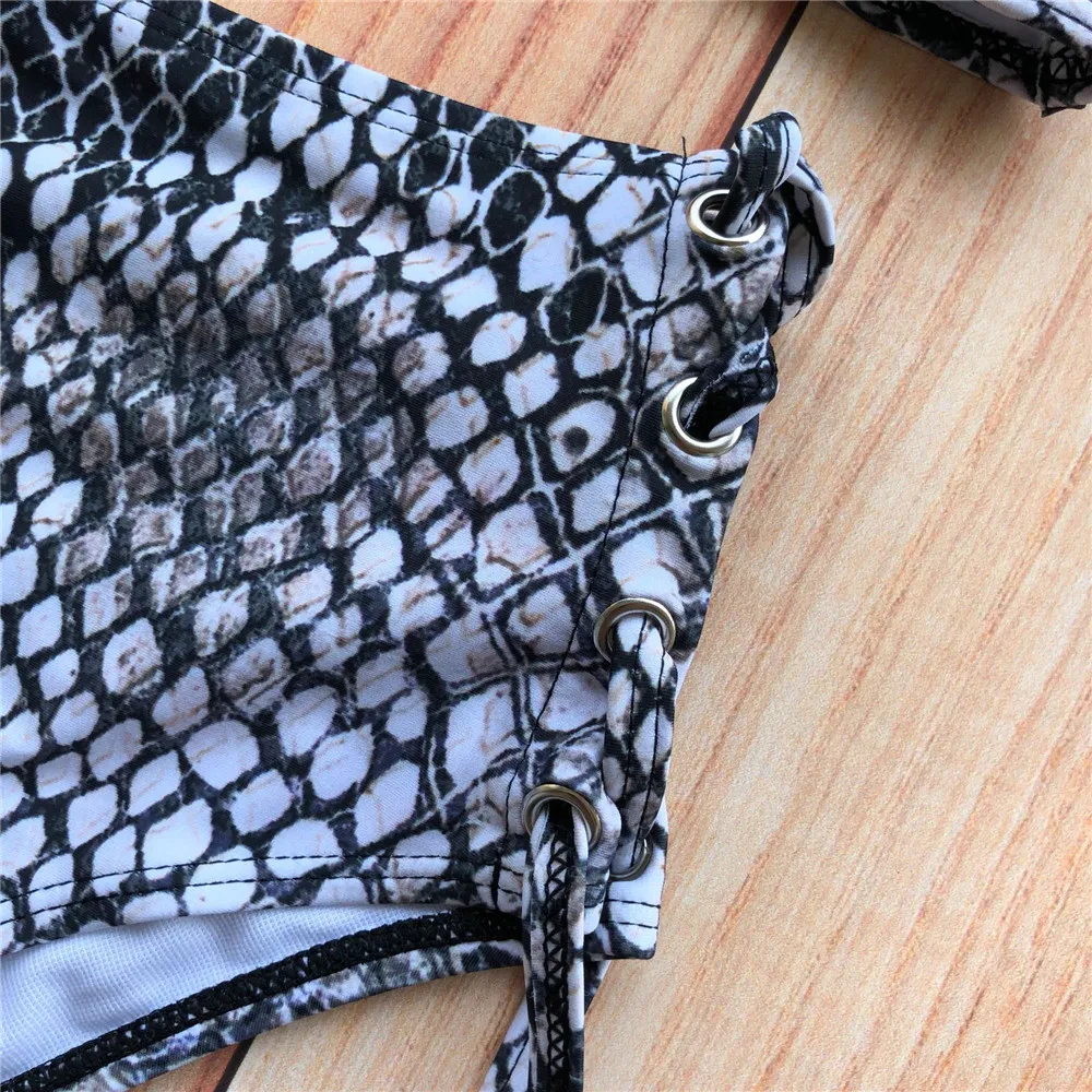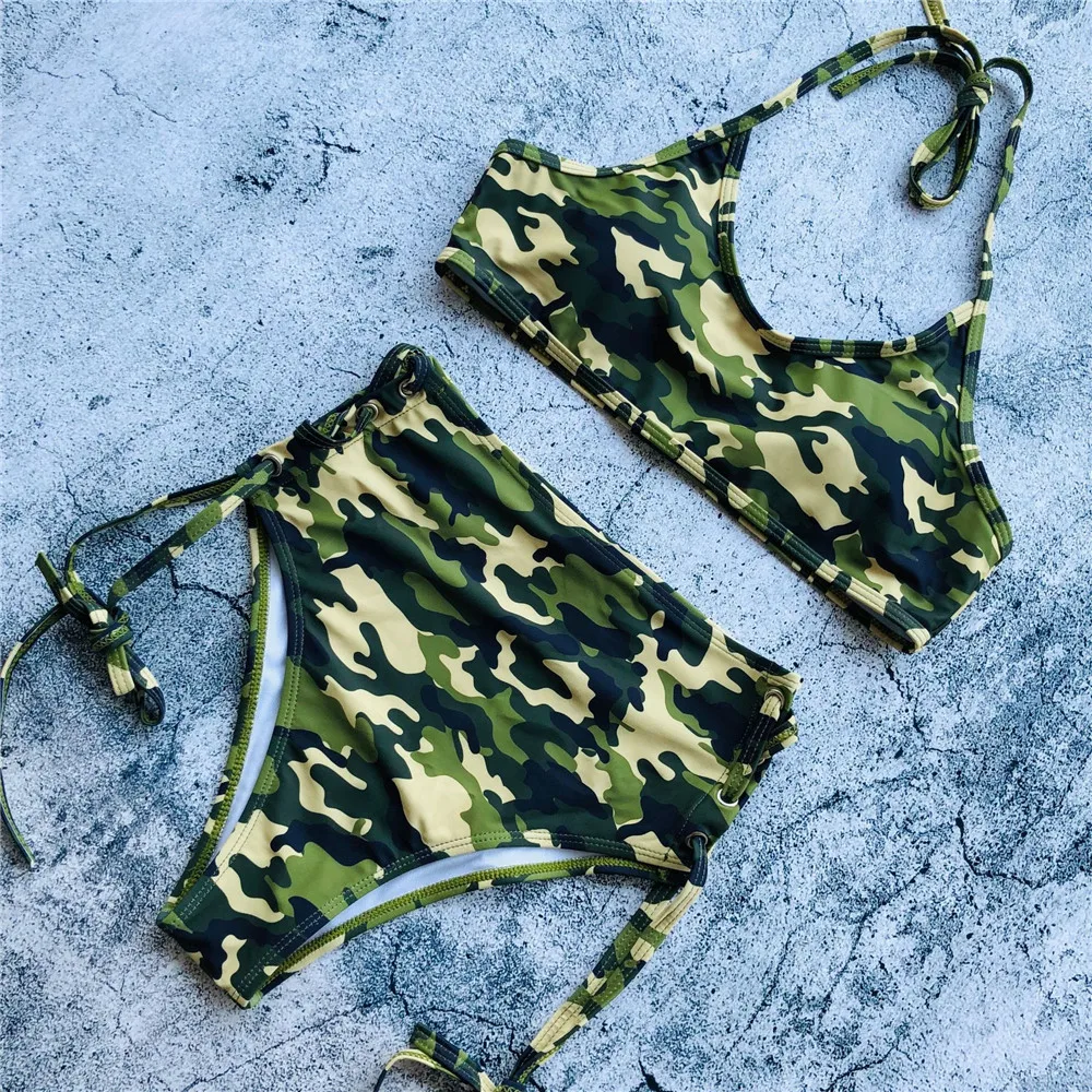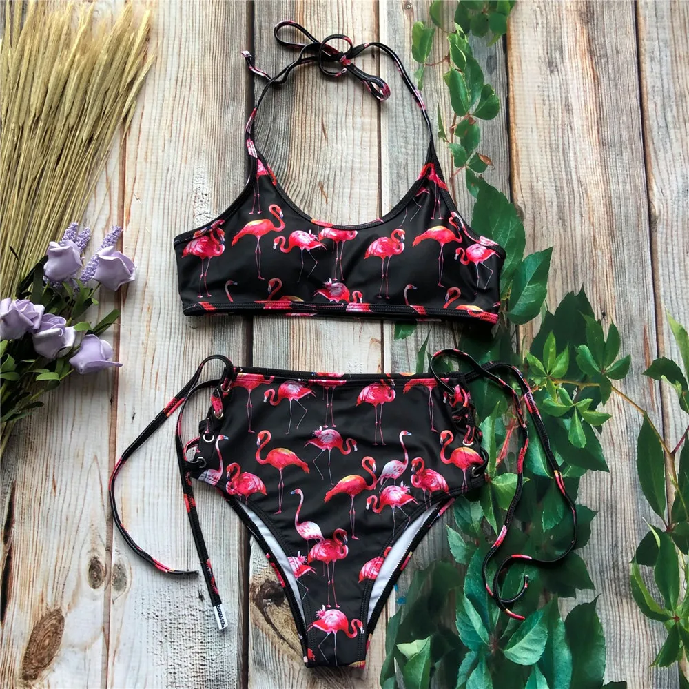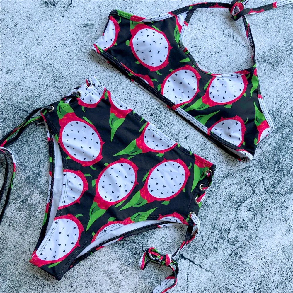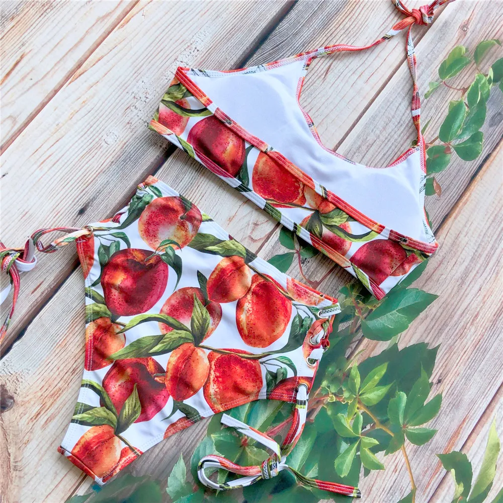 Сексуальный Тропический цветочный/Фруктовый принт, высокая талия, бикини, бандо, 2020, повязка на шее, купальник, женская одежда для плавания, пляжная одежда, купальный костюм