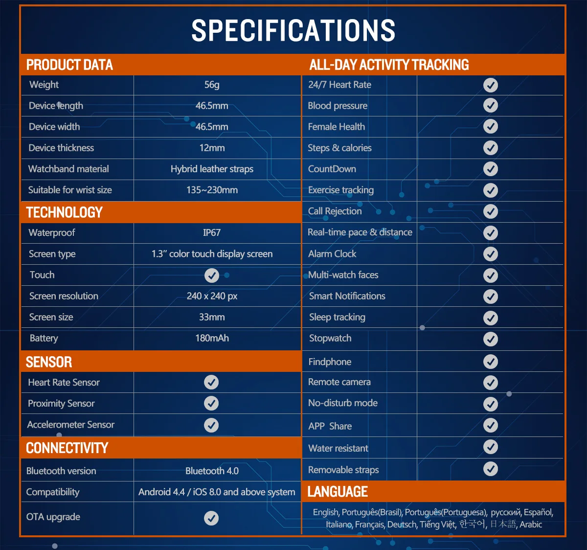 интеллектуальные часы оснащены цветным экраном IPS 1,3 дюйма, можно разобрать комбинированную ремешку (итальянский кожаный ТПУ малого рогатого скота), элегантный внешний вид и практический спортивный браслет, камеры, тренажёры, переговорные напоминания, чтобы обеспечить вам легкий образ жизни.Я могу помочь тебе. [функция] - 24 / 7 ритма сердца, кровяное давление, количество шагов и калорий, обратный отсчет времени, здоровье женщины, отказ от звонка, слежение за движением, скорость и расстояние в реальном времени, уведомление смартфона, слежение за сном, секундомер, Findphone, будильник, различные панели часов. .внешний вид, используя благородный и изящный дизайн, функционально увеличивает функцию охраны здоровья женщины, может быть в подарок матери или жене.Конечно, это нейтральные часы, доступные как мужчинам, так и женщинам. [совместимость] - - эти 3d - шаговые часы BT 4.0 совместимы с Android 4.4 / iOS 8.0 и выше.У него есть удалённая видеокамера, которая позволяет вам записывать на дороге красоту вокруг, 7 дней в течение длительного времени, чтобы сделать ваш опыт более удобным. эффективное обслуживание - наш магазин уважаемых услуг в течение первых 24 часов предоставляет высококач