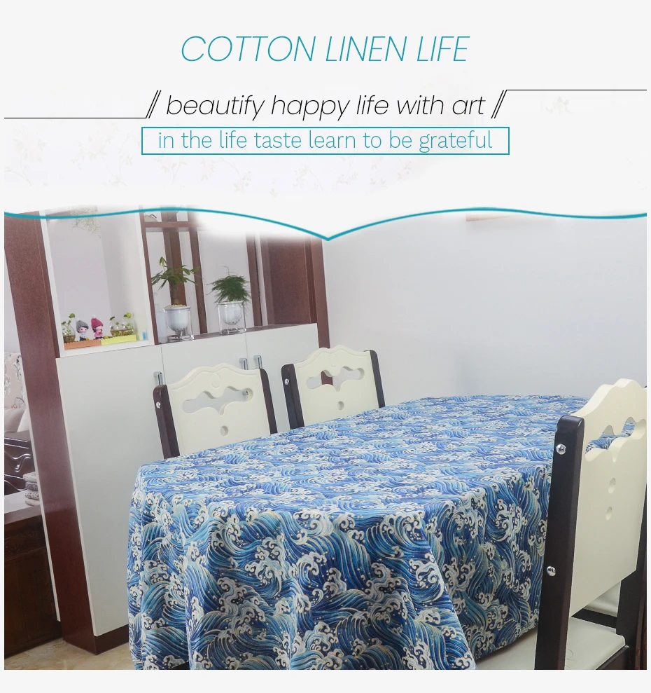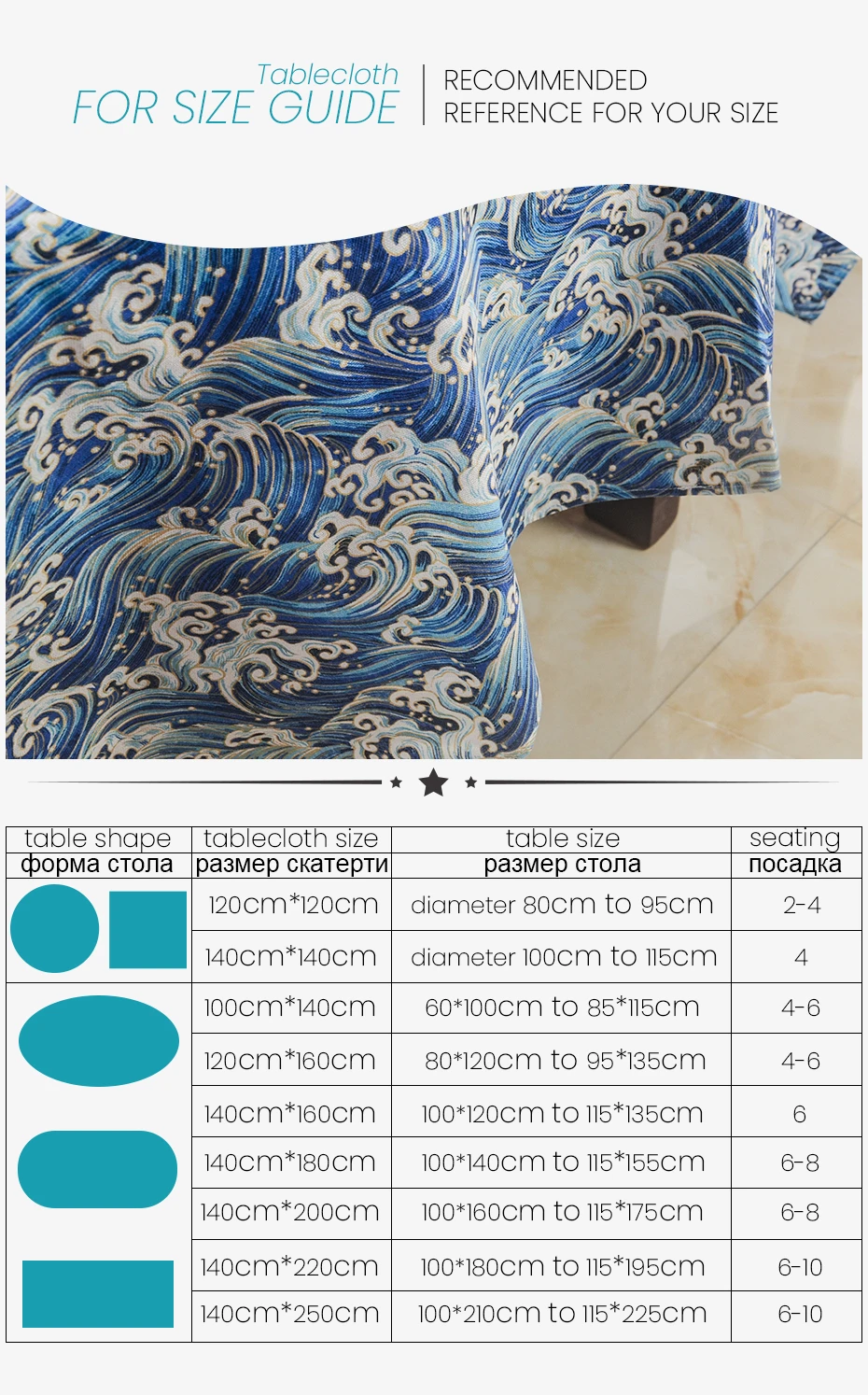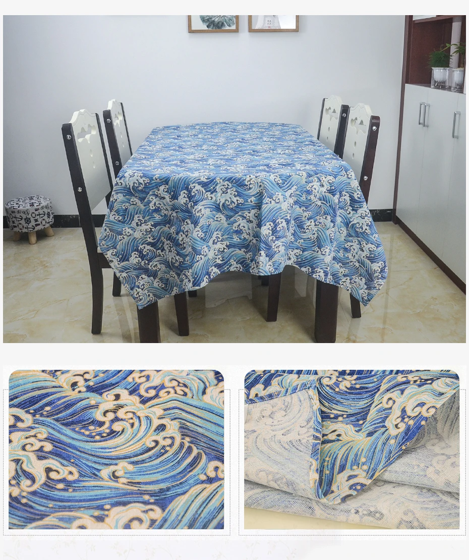 Голубая морская волна с золотыми боковыми узорами на хлопковой льняной ткани добавит красоты вашему столу. Прямоугольная скатерть может быть использована в помещении или на открытом воздухе, например, на кухне, гостиной, столовой, патио, саду, вечеринке, рождественском сезоне, новом году и т. Д. Эта элегантная скатерть добавит очарования вашему обеденному столу.