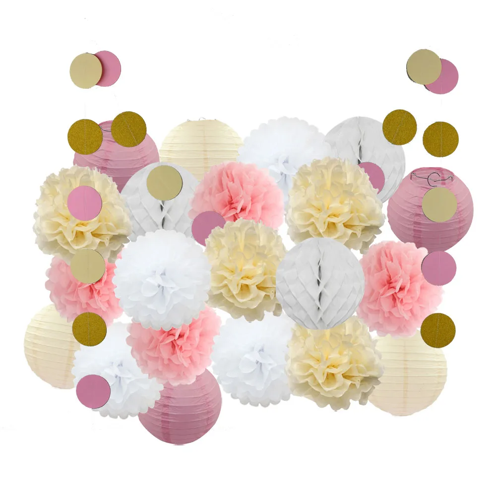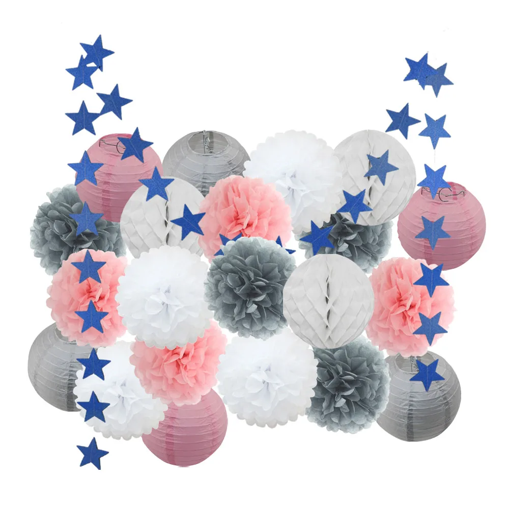 1 Набор = 6 шт 8 "бумажный фонарь + 3 шт 8" Соты + 12 шт 10 "бумажный помпон + 1 шт баннер.