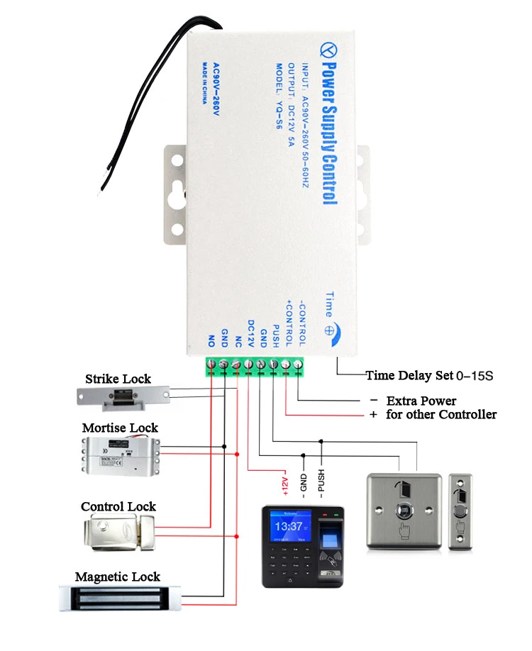 Это блок питания 110V--260V (12V3A) 90V-260V(12V5A) контроля доступа, он состоит из высококачественных электронных компонентов и передовых международных технологий, он имеет способность анти-помех, обеспечивает очень стабильный и надежный выход в различных приложениях, таких как блокировка управления/Управление Лер/кнопка выхода/RFID-IC считыватель. И т. д. Он контролирует электрический замок напрямую. Может уменьшить нагрузку контроллера доступа, сохранить проводку, чтобы устранить скрытые проблемы Набор NC/без выходов, может управлять различными типами электрических замков На основе системы контроля задержки, время блокировки может быть в 0-15 секунд Функция автоматической защиты, неожиданные ситуации, такие как Когда происходит короткое замыкание источника питания, питание может быть Временно отключен или предохранитель автоматическое страхование линия выключена Оперативный устройства: E/M замок, контроллер доступа, кнопка выхода Входное напряжение переменно тока: Стандартный AC110V-260V(12V3A) 90V-260V(12V5A) Выход постоянного тока: Stabilivolt DC12V/3A или DC12V/5A Как правило, 12V/3A для одной двери типа, 12V/5A для двухдверная тумба и один тип двери