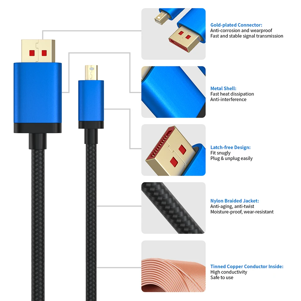 Кабель hdmaters Mini DisplayPort 1,4 является незаменимым компаньоном для любых компьютеров и мониторов с DisplayPort. Расширьте Рабочий стол до второго монитора для расширенной рабочей станции. Подключите Потрясающие 8K телевизоров или 144 монитор Гц с displayport in. Этот кабель MDP к DP 1,4 изготовлен и протестирован для соответствия требованиям Vesa Displayport 1,4.