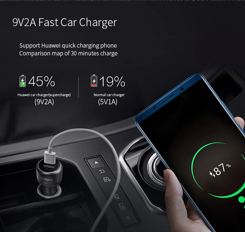 Оригинальное автомобильное зарядное устройство Huawei Quick Adapter & 2 A usb кабель для P20 P10 P9 P8 Mate 20 lite Nova 2i 2 3 3e 4 4e p smart z 2019