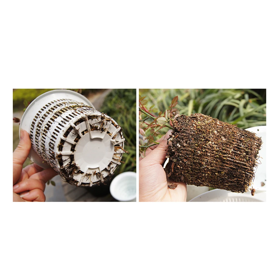 2 шт сетчатый горшок вентиляция цветочный горшок контроль корня контейнер плантатор с лотком-белый/кофе