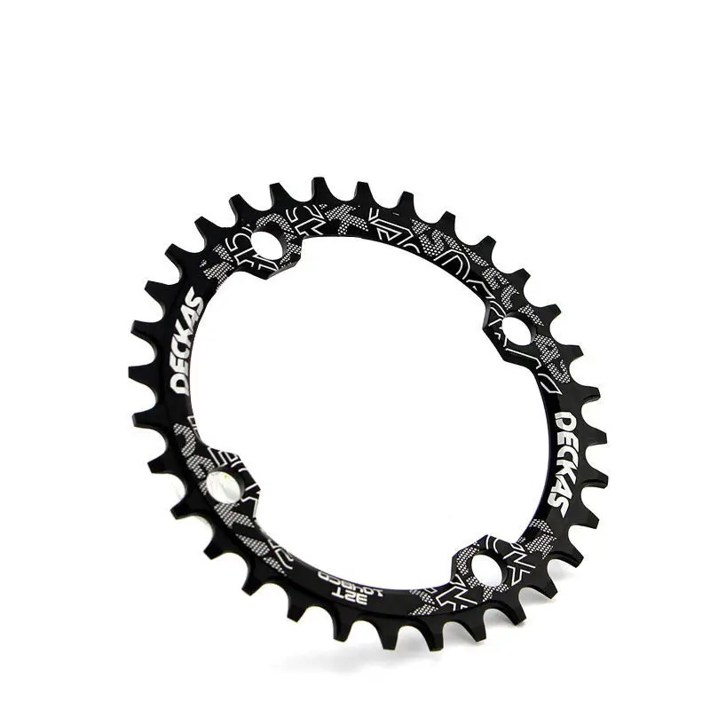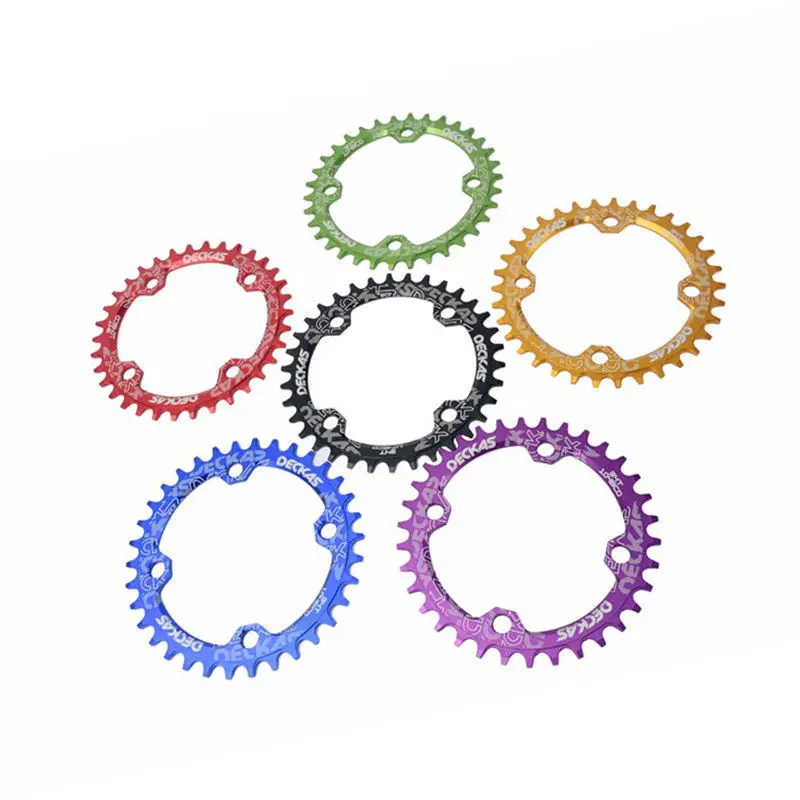 Бренд: DECKAS Цвет: черный, красный, синий, зеленый, фиолетовый, золотой Форма: круглая Материал: 7075-T6 Алюминиевый сплав BCD: 104BCD Зубы: 32/34/36/38T Вес: около 63 г Совместимость со всеми скоростными цепями 8-12 Толщина: 4 мм