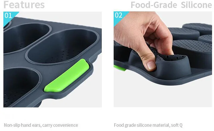 Пищевой силикон, температура от-40 до 230 градусов, может быть помещен в духовку или холодильник. Стабильность, теплопроводность, пластичность, легко моется. Одна форма содержит восемь карнизов. Хорошая гибкость, не легко треснуть при изгибе. Равномерное отверстие внизу, антипригарное, легко снимается.