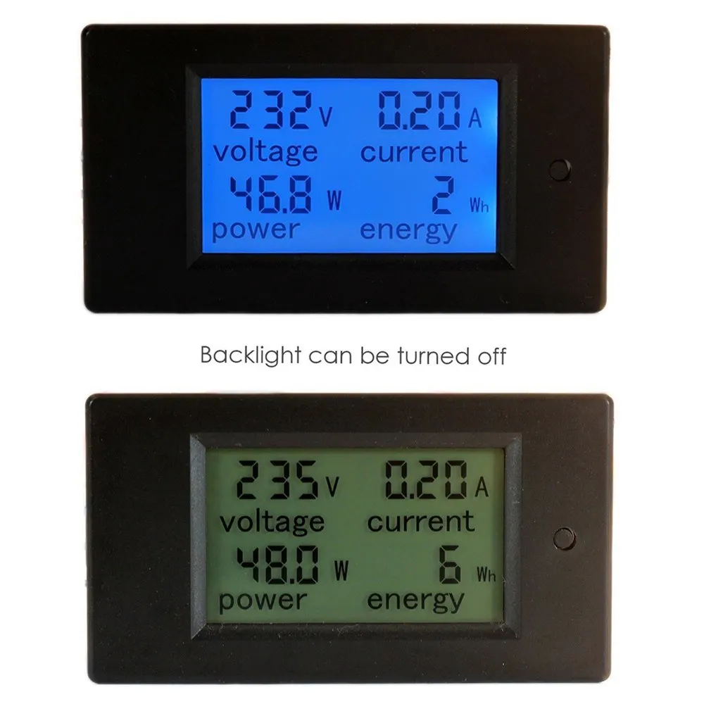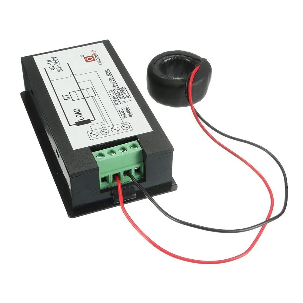 Этот измеритель можно использовать только с однофазным источником питания переменного тока. И он может измерять только активную мощность. Сохраните данные об энергии при отключении питания, кнопка доступна для управления. Также с функцией сигнализации о перегрузке подсветка и питание будут мигать при превышении заданного значения. Особенности: 4 в 1, с функцией измерения нескольких электрических параметров. Большой ЖК-дисплей может одновременно отображать напряжение, ток, активную мощность и энергию. Двойное измерение напряжения переменного тока, переменного тока с трансформатором переменного тока. Благодаря функции сигнализации о перегрузке подсветка и питание будут мигать при превышении заданного значения. Синюю подсветку можно включать/выключать вручную. Работает одна кнопка, проста в использовании, не требует питания. Сохраните данные об энергии при отключении питания, кнопка доступна для управления. Измерение энергии является энергонезависимым из-за отключения питания. Можно сбросить до нуля с помощью кнопки reset. Характеристики: Рабочее напряжение: 80 ~ 260 В переменного тока Номинальная мощность: 100А/22000 Вт Рабочая частота: 45-65 Гц Диапазон тестирования и формат отображения: Мощность: диапазон тестирования: 0 ~ 22 кВт <1 кВт, дисплей: 0,0 ~ 999,9 Вт 1 кВт ~ 10 кВт, дисплей: 1000 ~ 9999 Вт > 10 кВт, дисплей: 0,1 ~ кВт Энергия: диапазон тестирования: 0 ~ 9999 кВтч <10 кВтч, дисплей: 0 ~ 9999 Втч > 10 кВтч, Дисплей: 10 ~ 9999 кВтч Напряжение: диапазон тестирования: 80 ~ 260 В (однофазный) Дисплей: 80 ~ 260 в Ток: диапазон тестирования: 0 ~ 100 А Дисплей: 0,00 ~ 99.99A Рабочая температура: -10 °C ~ 65 °C Влажность при эксплуатации: 35 ~ 85% относительной влажности Точность: ± 1% Потребляемая мощность: 0,2 Вт Скорость измерения: 2 раза/с Вес изделия: 105 г/3,70 унции Вес посылка: 113 г/3,99 унции Размер отверстия: 8,5*4,5 см/3,35 * 1.77in Размер изделия: 9*5*2,5 см/3,54*1,97 * дюйма Посылка: 10*6*5 см/3,94*2,36 * 1.97in Кнопка управления: 1. Управление Подсветкой: Короткое нажатие для включения или выключения света 2. Отключение питания: Нажмите и удерживайте в течение 5 секунд, пока номер на экране не начнет мигать, затем прекратите нажатие. Повторное короткое нажатие, данные будут очищены и выйдут из режима мигания. Снова нажмите и удерживайте в течение 5 секунд, данные будут сохранены и выйдут из режима очистки питания. 3. Настройки сигнализации питания: Длительное нажатие, пока в области питания не появится «SET CLr». Окно питания показывает текущий диапазон будильника, а самая низкая цифра начинает мигать. Затем Коротко нажмите, чтобы добавить один (+ 1), настройки автоматически переместятся на другую цифру через 3 секунды. Нажмите и удерживайте в течение 5 секунд, чтобы выйти из системы после завершения настройки. Примечания 1. Этот модуль подходит для использования в помещении, а не на улице 2. Приложенная нагрузка не должна превышать номинальную мощность. 3. Заказ проводки не может быть неправильным. Посылка тация: 1 * мультиметр переменного тока 1 * трансформатор тока