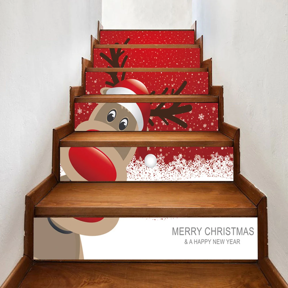 Мультяшный Олень клейкая лестница наклейка для лестницы Водонепроницаемая наклейка Рождественский Декор