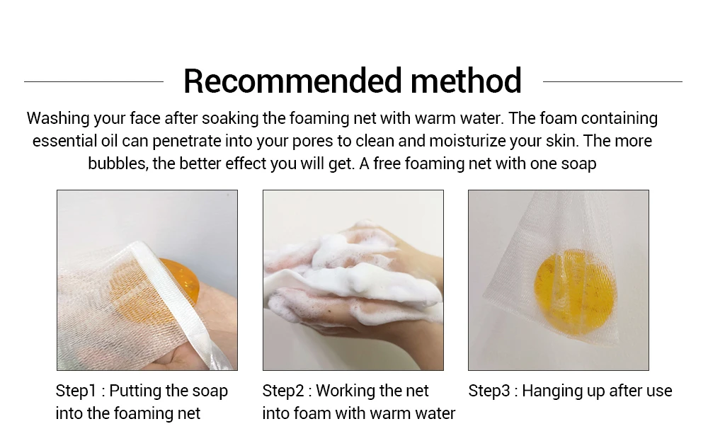 Стирайте лицо после замачивания пенящейся сетки теплой водой. Пена, содержащая эфирное масло, может проникать в ваши поры, чтобы очистить и увлажнить кожу. Чем больше пузырьков, тем лучше эффект вы получите. Бесплатная пенящаяся сетка с одним мылом