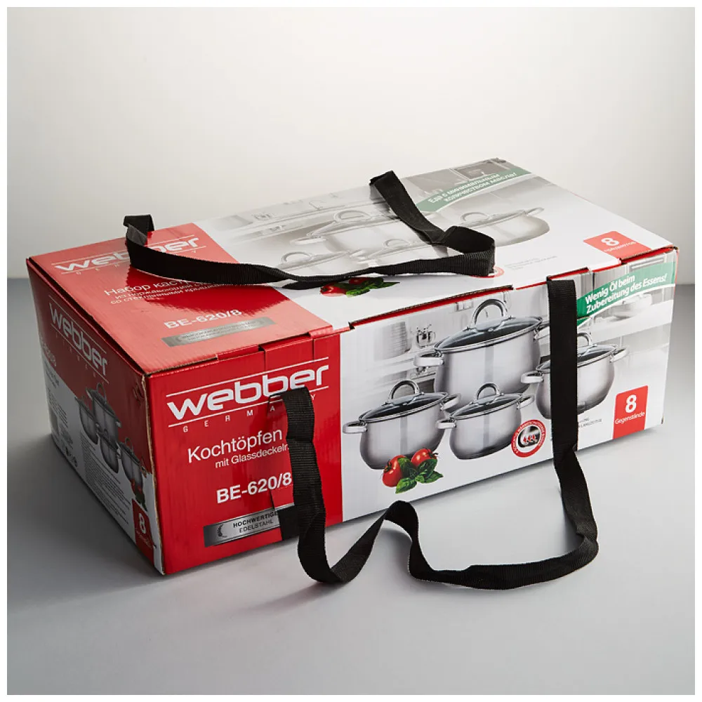 Набор посуды Webber из нержавеющей стали ( 8 предметов: 2,2л, 3,0л, 4,0л, 6,6л со стеклянными крышками)