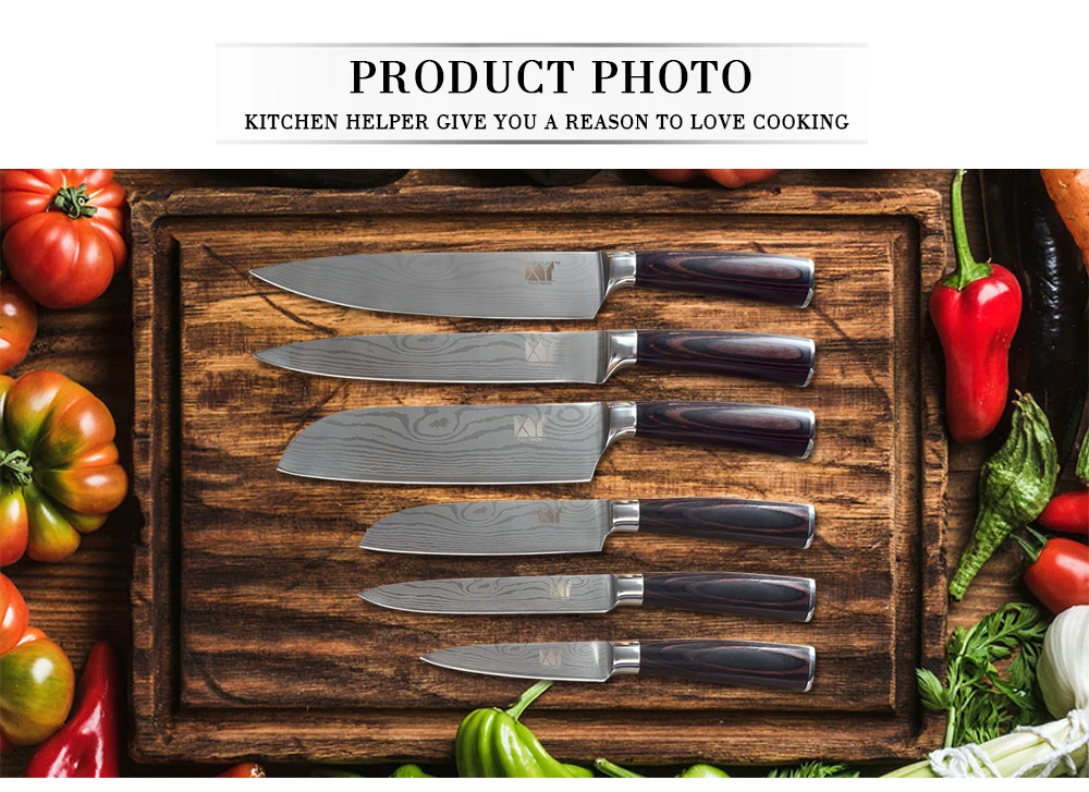 Узор очень похож на дамасский нож. Фактический процесс: лазерная технология. Очень стильный кухонный нож. Размер и вес почти одинаковые, и могут быть некоторые ошибки из-за различных инструментов измерения. Пожалуйста, поймите.