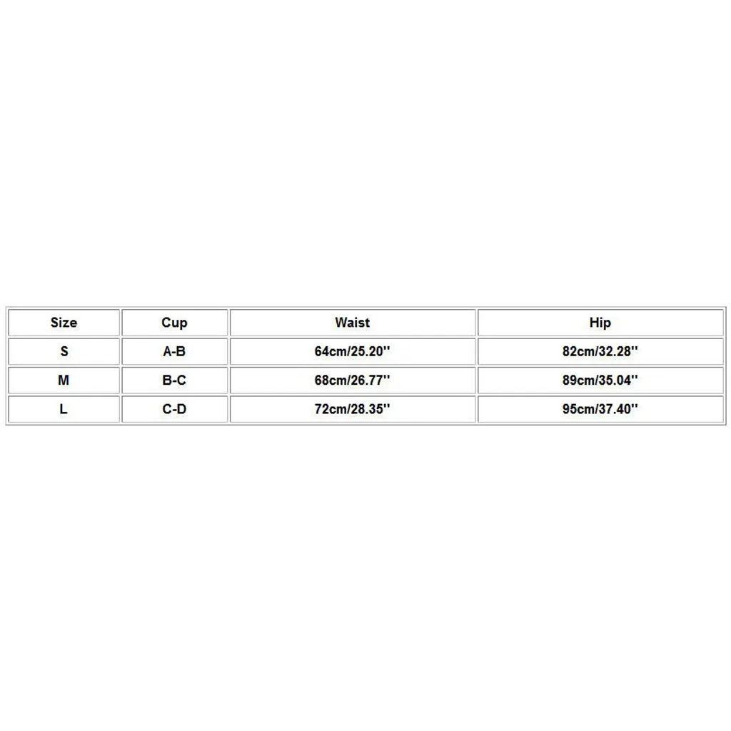 Size:S Cup:A-B Waist:64cm/25.20'' Hip:82cm/32.28'' Size:M Cup:B-C Waist:68cm/26.77'' Hip:89cm/35.04'' Size:L Cup:C-D Waist:72cm/28.35'' Hip:95cm/37.40''