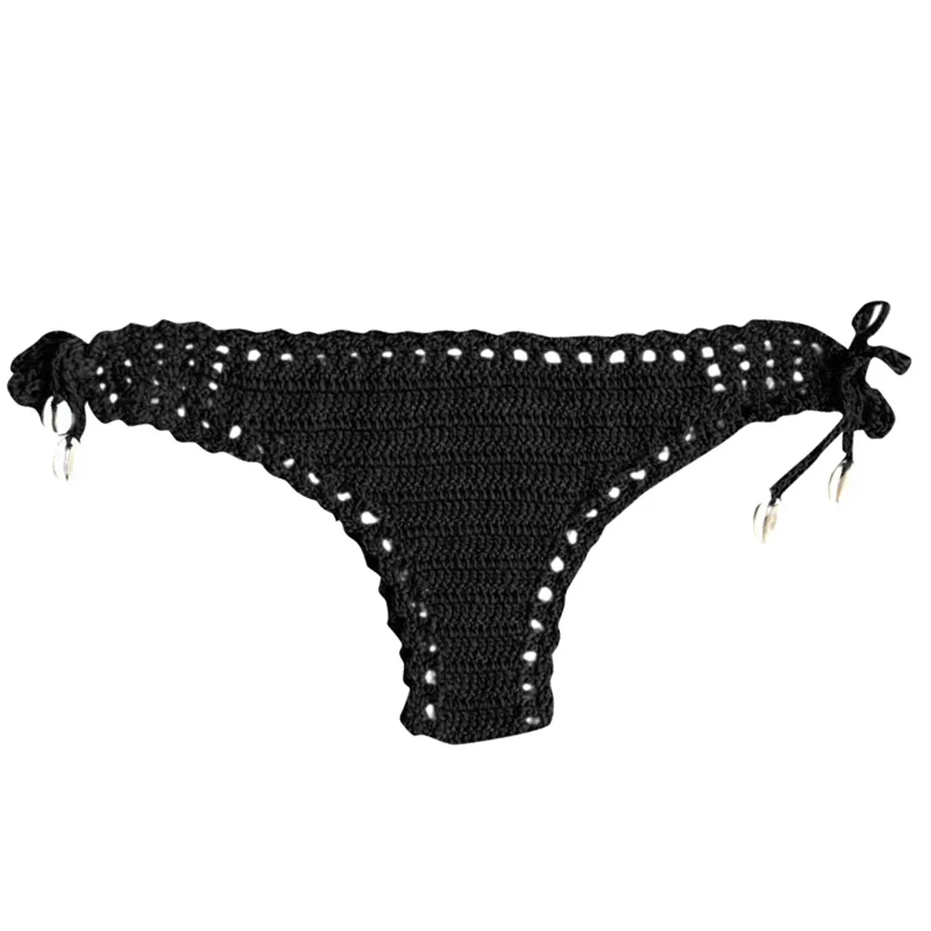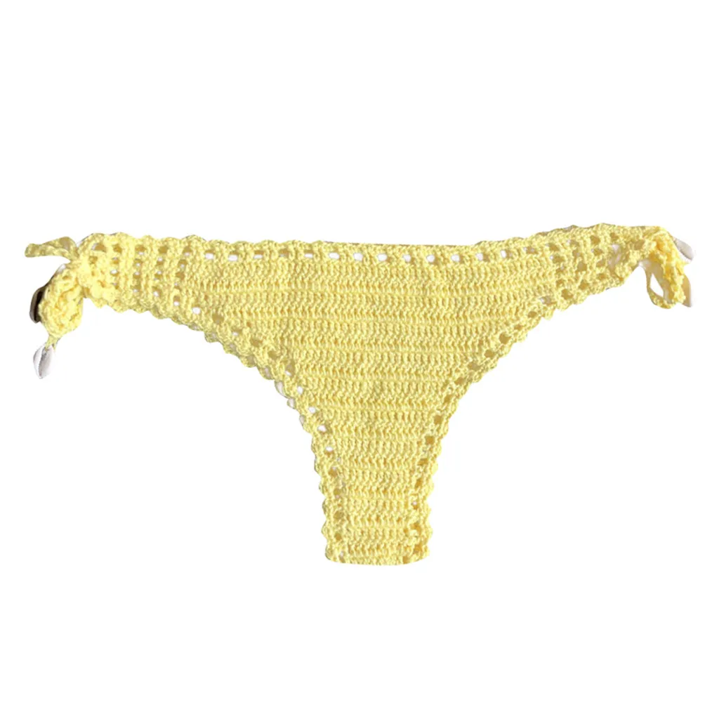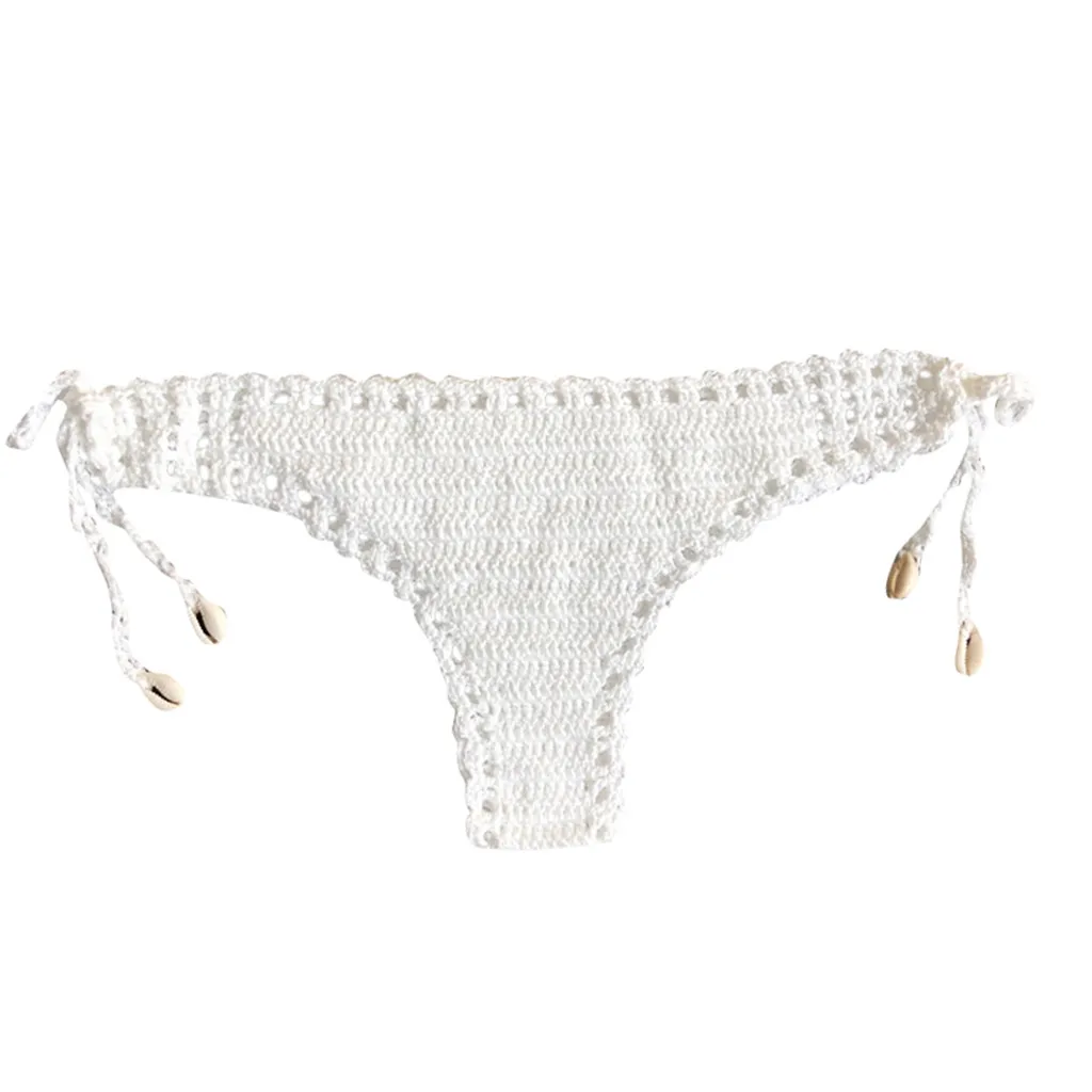 Summer Ladies Vintage Beach Crochet Panties Vacation Shell Bikini Swim Shorts Solid Low Waist Swimwear For Women 2020 Fashion