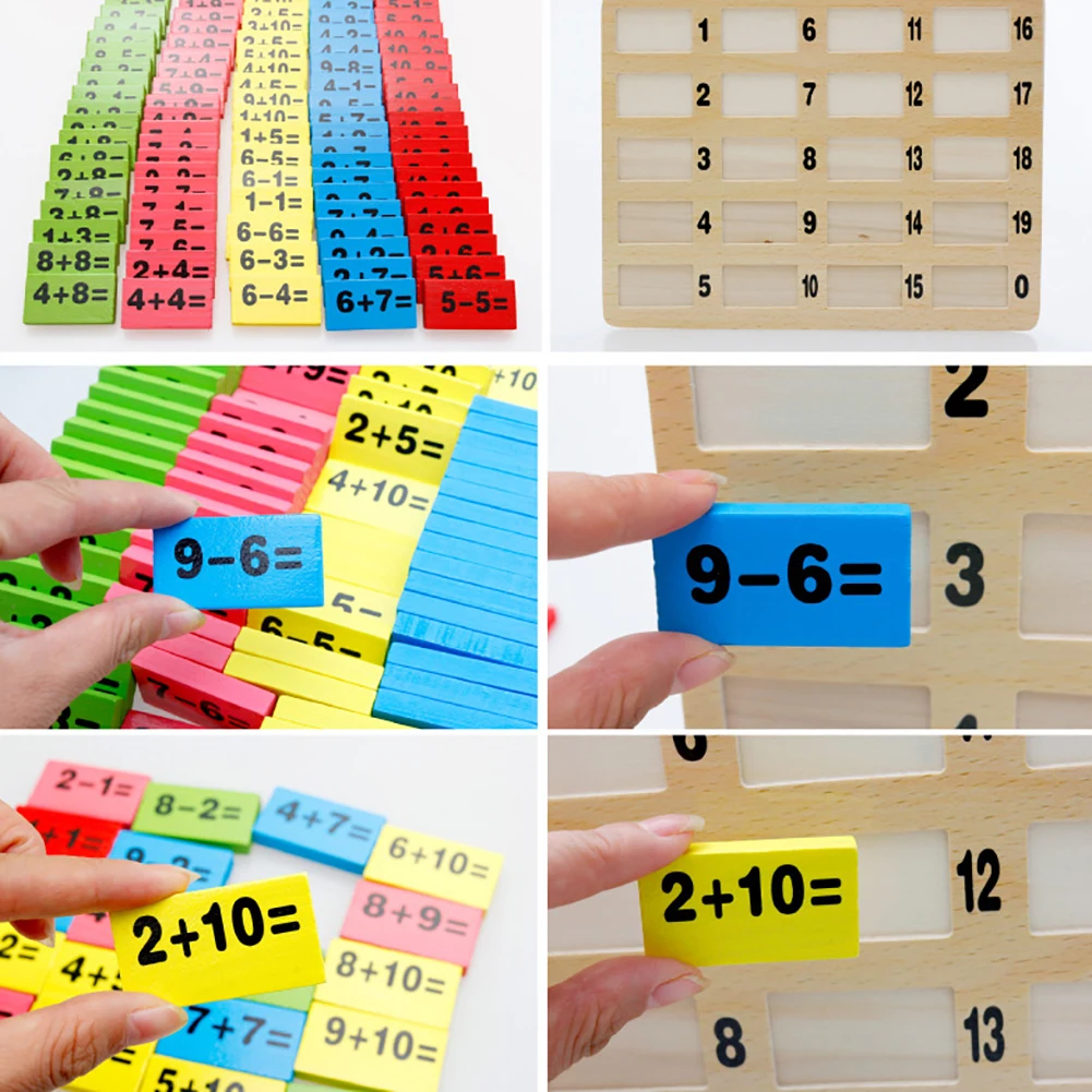 1 Набор детских деревянных игрушек домино, конструктор из палочек, математическая игра для подсчета, обучающая детская игрушка