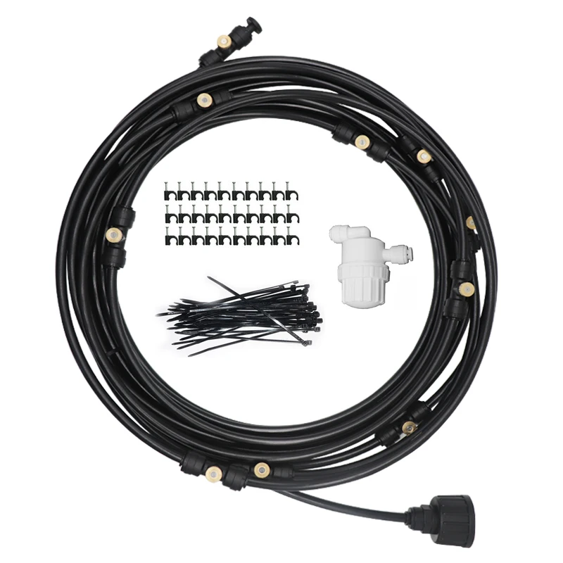 Садовый распылитель с несколькими цветами и размерами Длина 6 м/9 м/12 м/15 м/18 м Цвет: черный Насадки: 0,4 мм латунной насадки Трубка: 1/4 ''(6,35 мм) PE трубка Легко собирается и прост в использовании Запотевание для садовых и зеленых шлангов