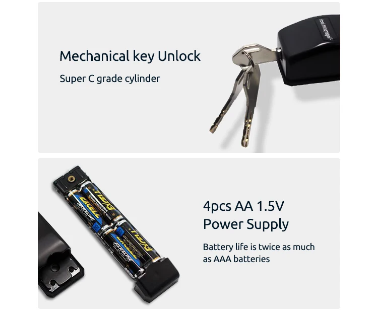 Метод разблокировки: отпечаток пальца/код/RFID карта/механический ключ