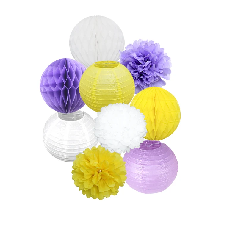 Size:6inch(15cm)/8inch(20cm) /10inch(25cm)/12inch(30cm) Material:paper Package: 1set=3pcs paper lantern+3pcs honeycomb+3pcs paper pom pom