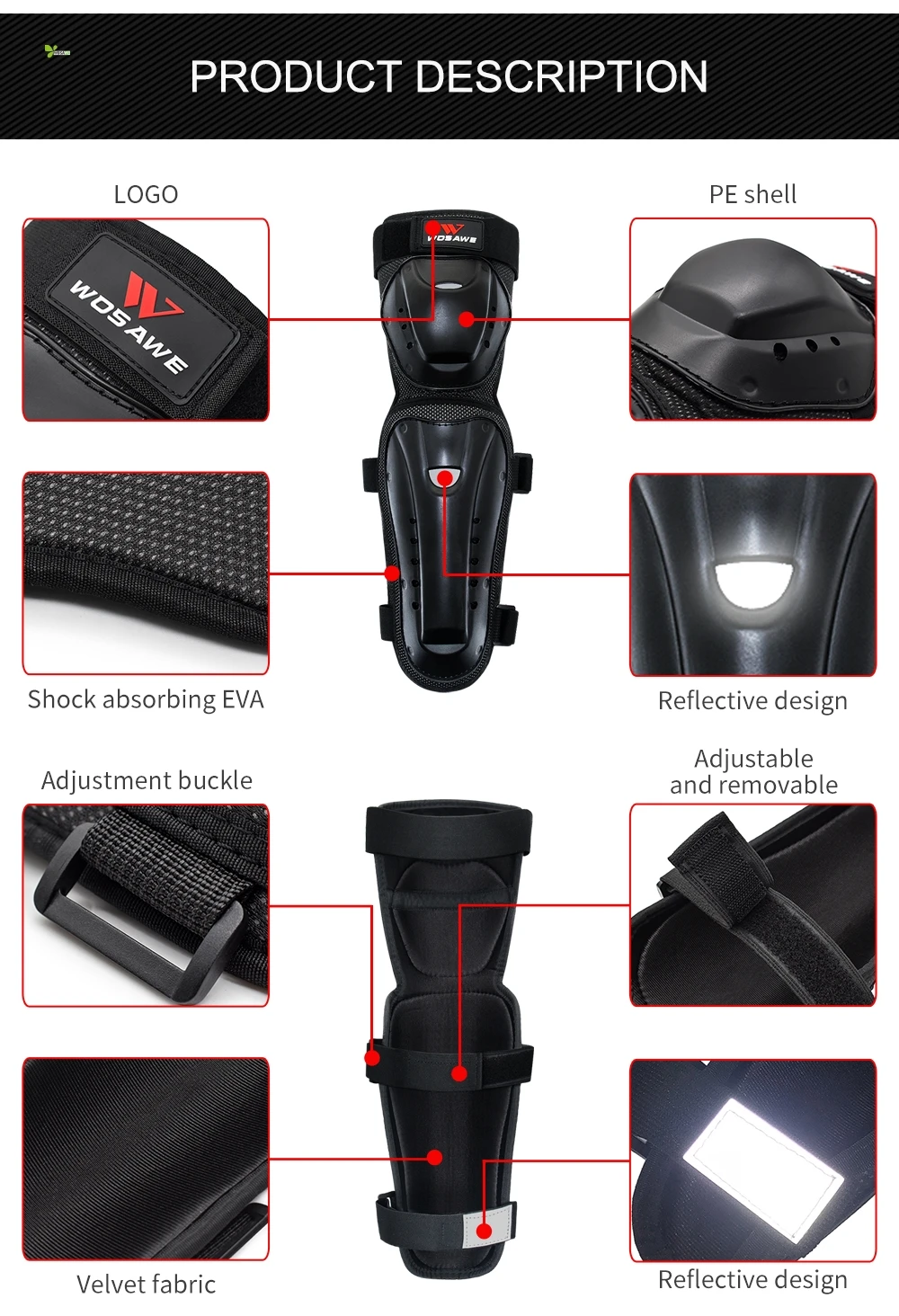 Эргономичный дизайнАмортизирующий материал EVAПриятная для кожи и гладкая внутренняя тканьСветоотражающий и модный дизайн, безопаснееЗащитная оболочка из полиэтилена против столкновений, прочная и прочнаяЗащитное снаряжение может быть согнуто, более гибкое движениеНесколько вентиляционных отверстий в защитной оболочке, хорошая воздухопроницаемостьРегулируемая Волшебная наклейка, Регулируемая пряжка и съемный нагрудный Доспех