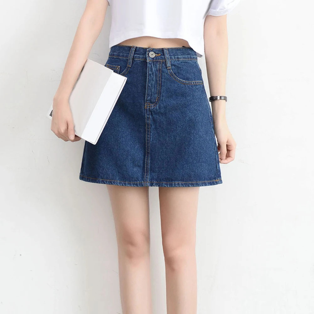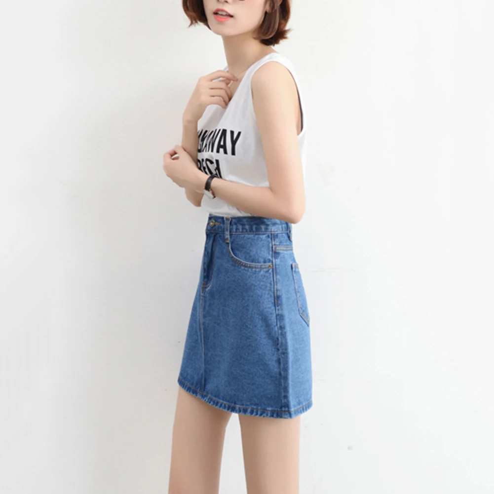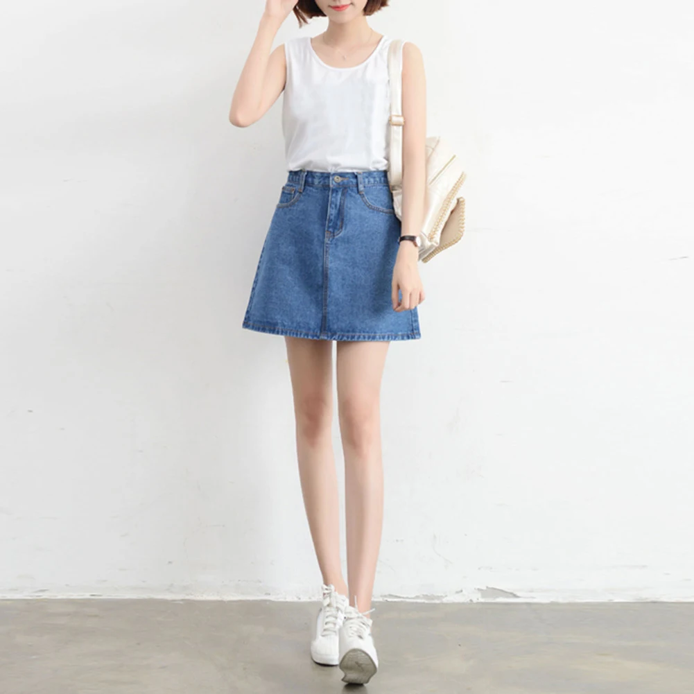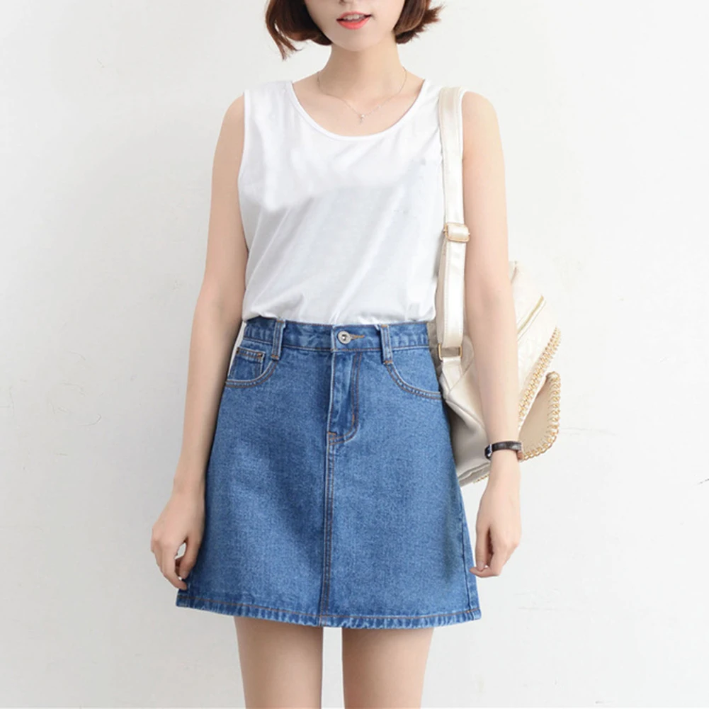 Denim skirt, well matches with many tops.