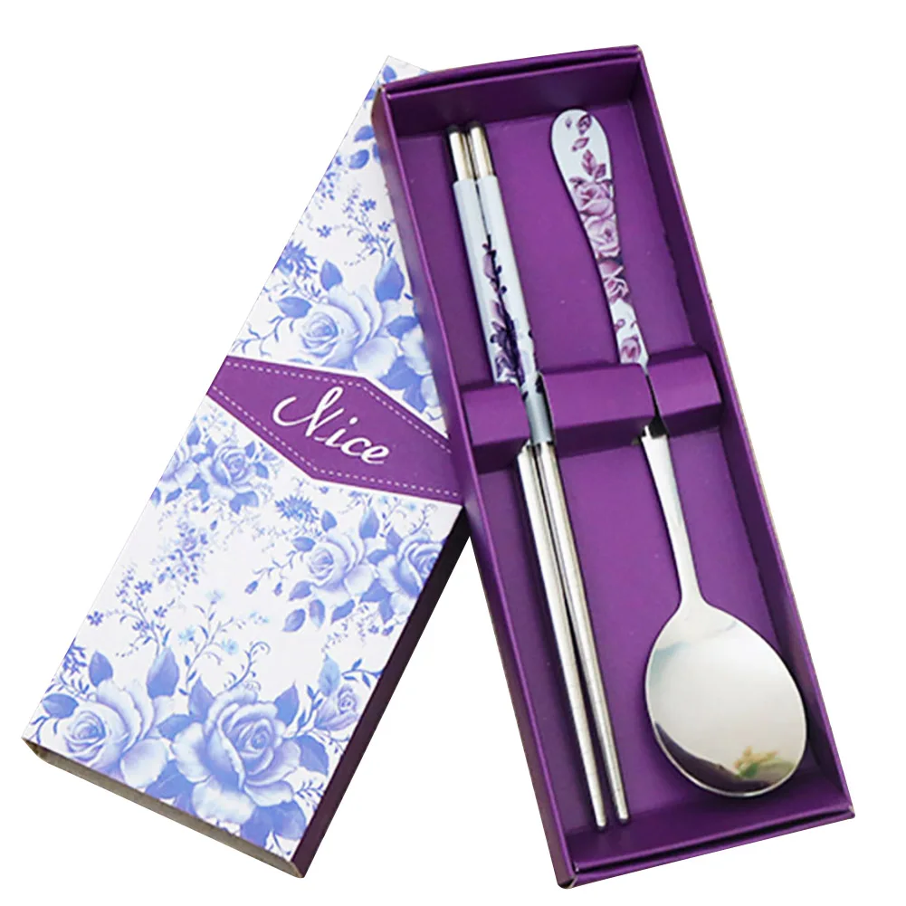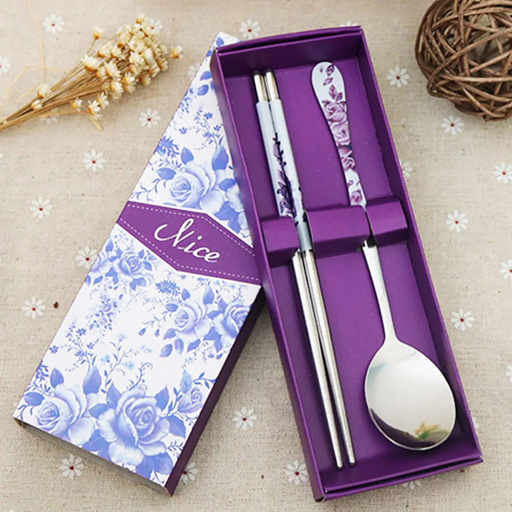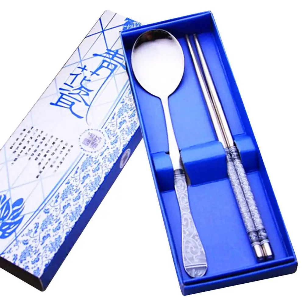 2 шт. портативные палочки для еды из нержавеющей стали для путешествий на открытом воздухе, ложка, подарочный набор посуды
