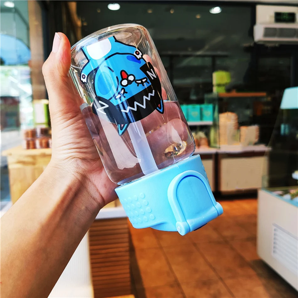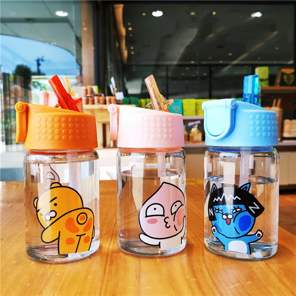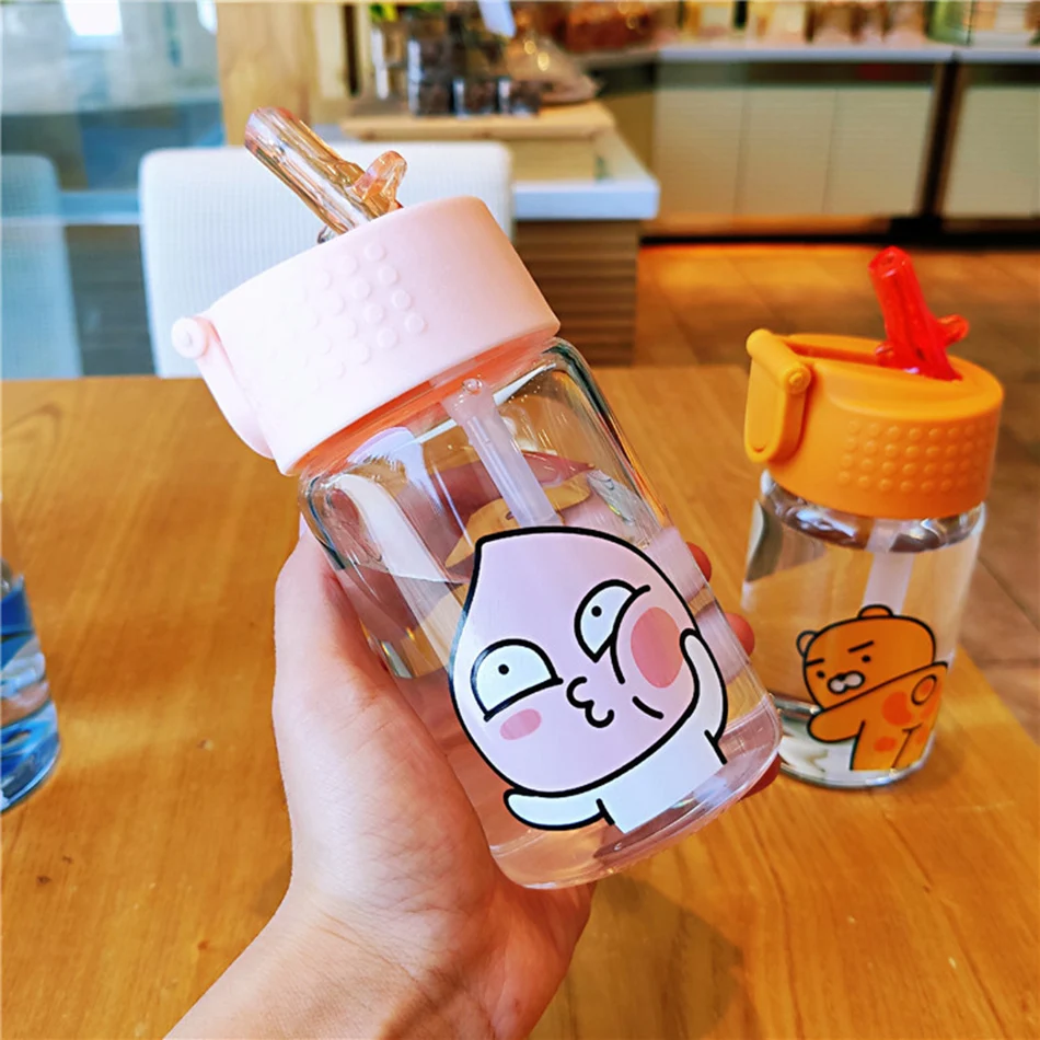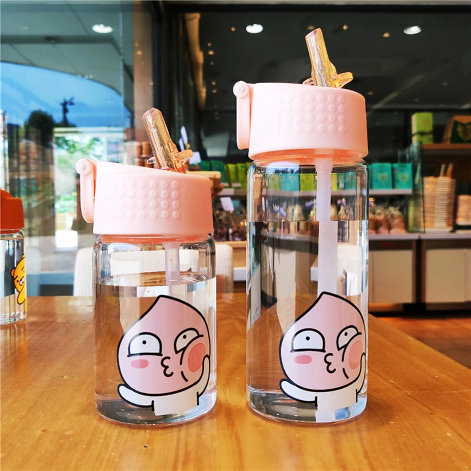 100% новый бренд высокого качества. Милая мультяшная чашка, герметичное Силиконовое кольцо, хорошее уплотнение. Легко носить с ручкой. Параметры: Материал: высокое боросиликатное стекло + пищевой полипропилен Емкость: 350 мл и 450 мл 350ml: H 15 * D 5,5 см 450ml: H 18,5 см * D 5,5 см Высокая термостойкость: -10 ° C-120 ° C