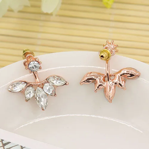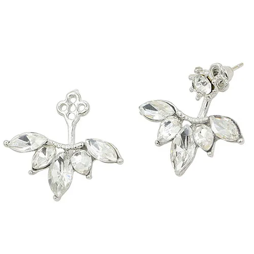 Особенности: свисающие серьги в форме листа, прозрачные инкрустированные стразами, модные для ушей серьги-гвоздики