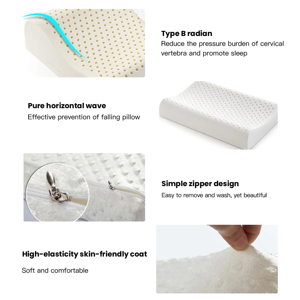 Примечание: обратите внимание, что натуральный латекс имеет натуральный нетоксичный резиновый вкус. Пожалуйста, положите его в плоское и вентилируемое место в течение 2-3 дней перед первым использованием. Если у вас аллергия на белки, мы рекомендуем вам рассмотреть наши подушки из пены с памятью, которые могут не подойти для вас.