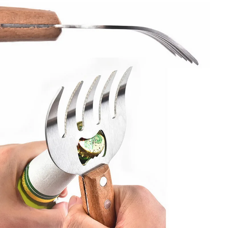 <Многофункциональность: позволяет легко тянуть/разрывать/поднимать/копать в горячую свинину, курицу и другую еду. Вы также используете его как открывалку для бутылок и нож для резки.