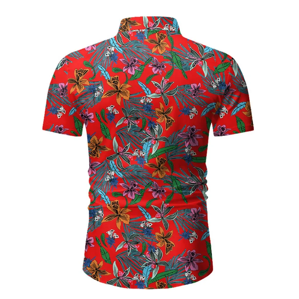 Мужская Повседневная летняя Гавайская футболка на пуговицах с принтом и коротким рукавом, топ, блузка