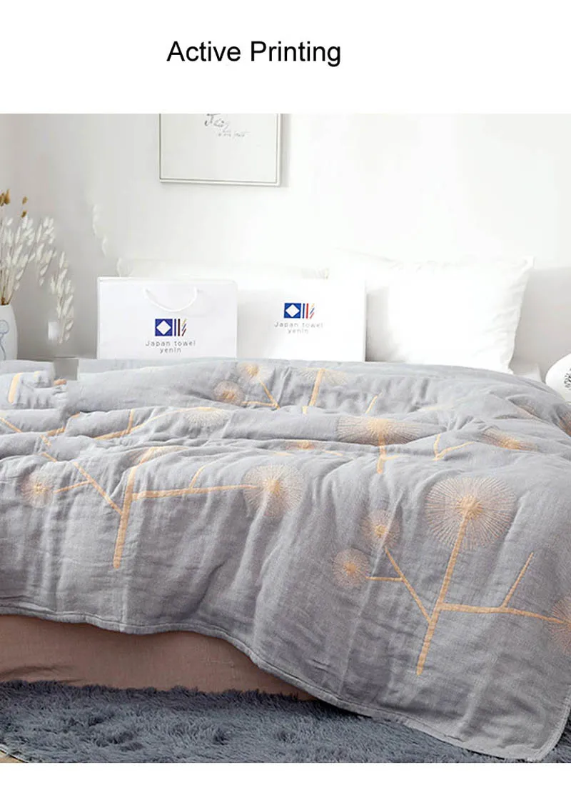 Параметры Материал: хлопок Размеры: 150x200 см, 200x230cm Дизайн: лист, одуванчик Многофункциональность: используется для летнего одеяла, летнего одеяла, клетчатой накидки, дивана и т. д. Примечание: в размерах могут be1-3cm ошибка и немного разница в цвете на веб-шопинг