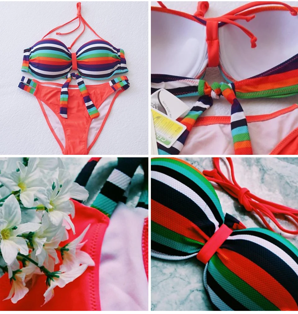 PERONA, сексуальный комплект бикини, для женщин, пуш-ап, купальник, бразильский, через шею, купальник, бандаж, в полоску, пляжная одежда, два предмета, купальники