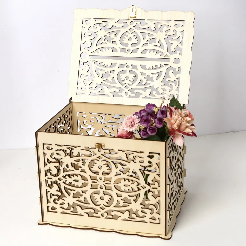 Коробка для свадебных карт с замком DIY деревянные подарочные коробки для дня рождения